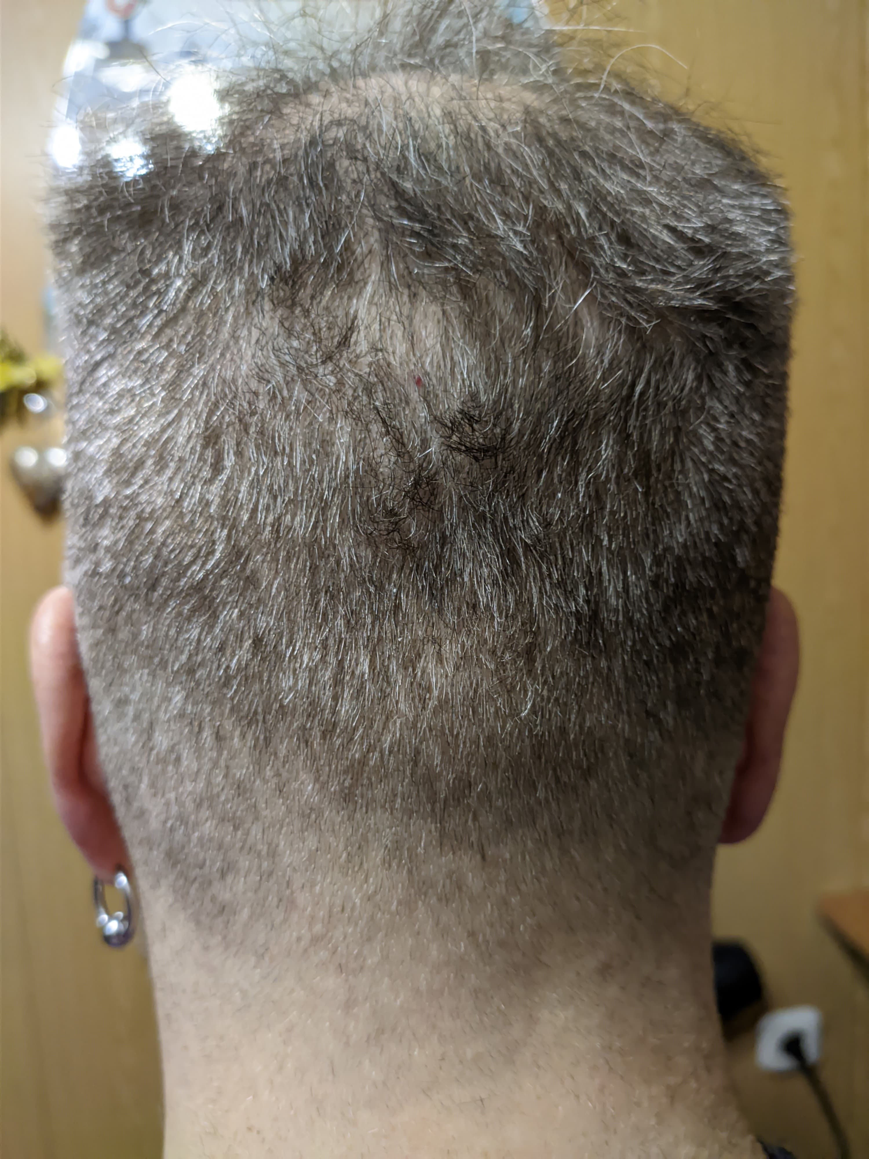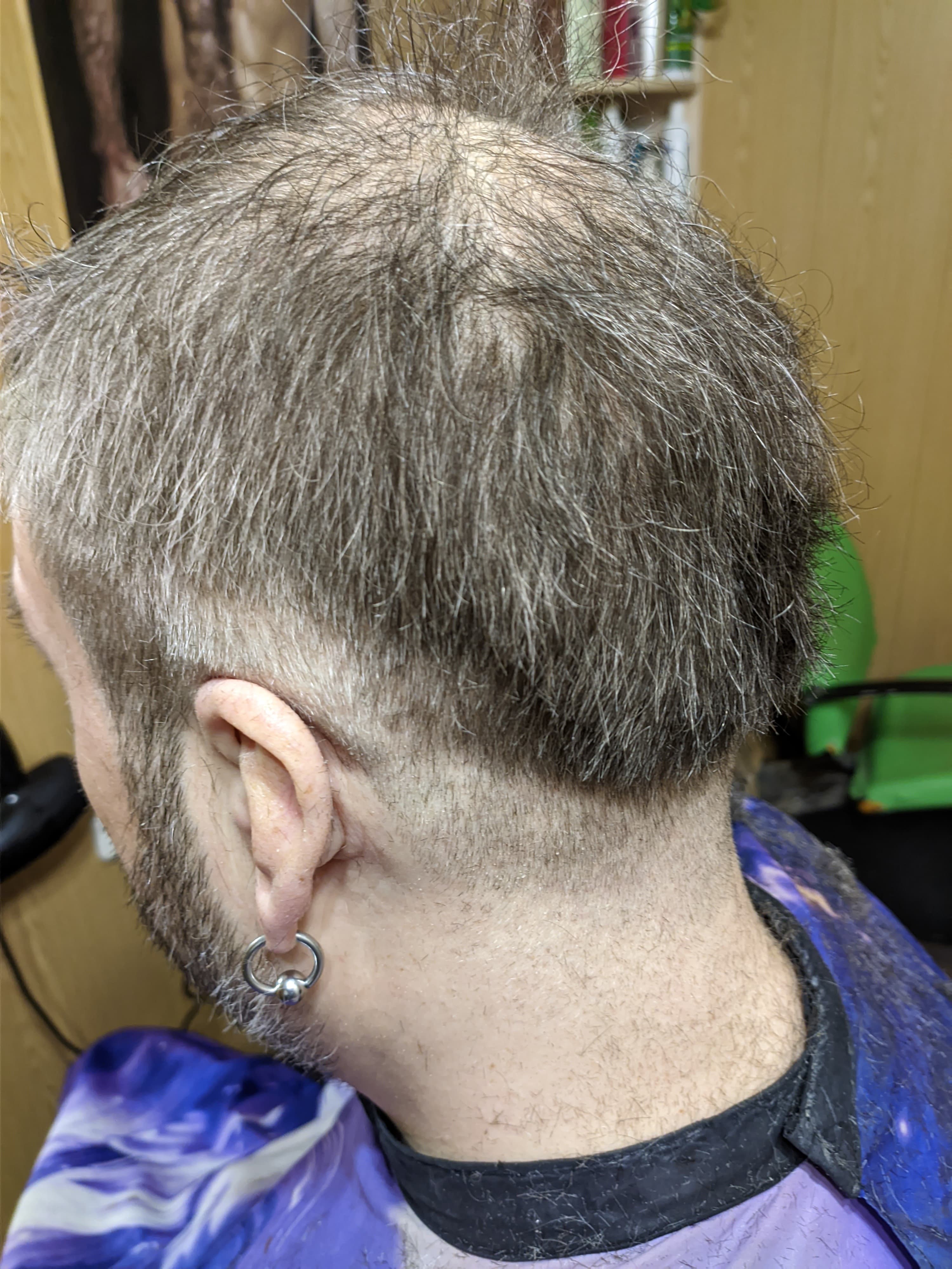 В ходе тестирования мы использовали сразу две машинки (вторая — также Evolution, более старшая модель Barber Full control). При этом старались чтобы зоны ответственности машинок не пересекались: с одной стороны головы работали одной машинкой, с другой — второй. На фотографиях работа устройства отражена с левой стороны головы (если в комментариях не указано обратное).
