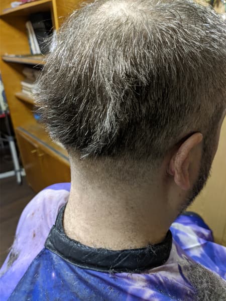 Стрижку мы начали с обработки зоны шеи. Вот исходное состояние.