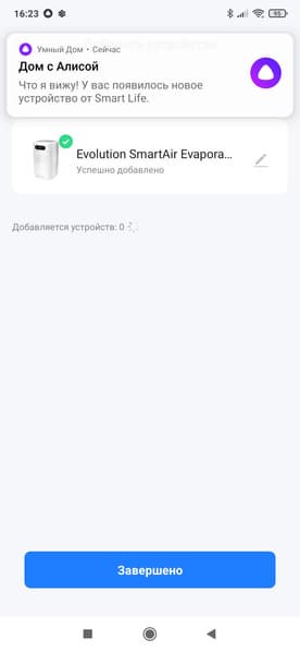 Помимо приложения, мы можем управлять устройством голосом — при помощи Алисы «Яндекса». Тут всё также оказалось несложно: «Умный дом» сам обнаружил, что в доме появилось новое умное устройство, и предложил добавить его на экран с другими гаджетами.