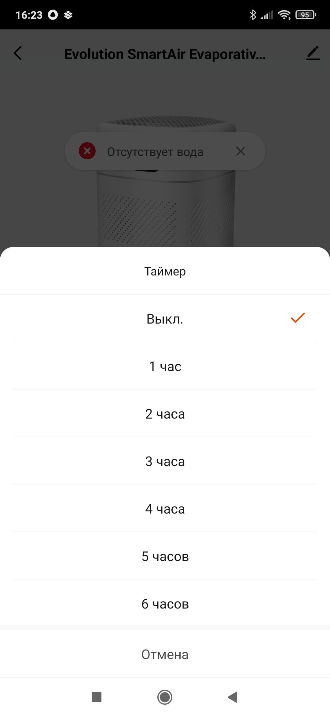 Как это часто бывает, голосовое управление через Алису оказалось реализовано плохо: на главной странице мы можем только включить и выключить прибор, а также поиграть с бесполезным (неработающим) бегунком, отвечающим за «Открытие» увлажнителя.