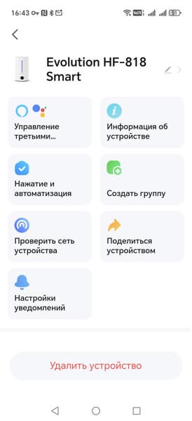 Выбрав устройство из списка на экране, можно попасть в меню управления им. Оно полностью дублирует все функции панели управления на самом устройстве.
