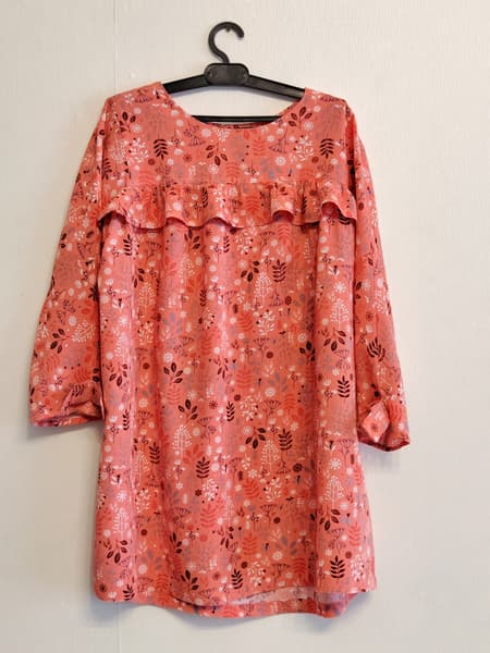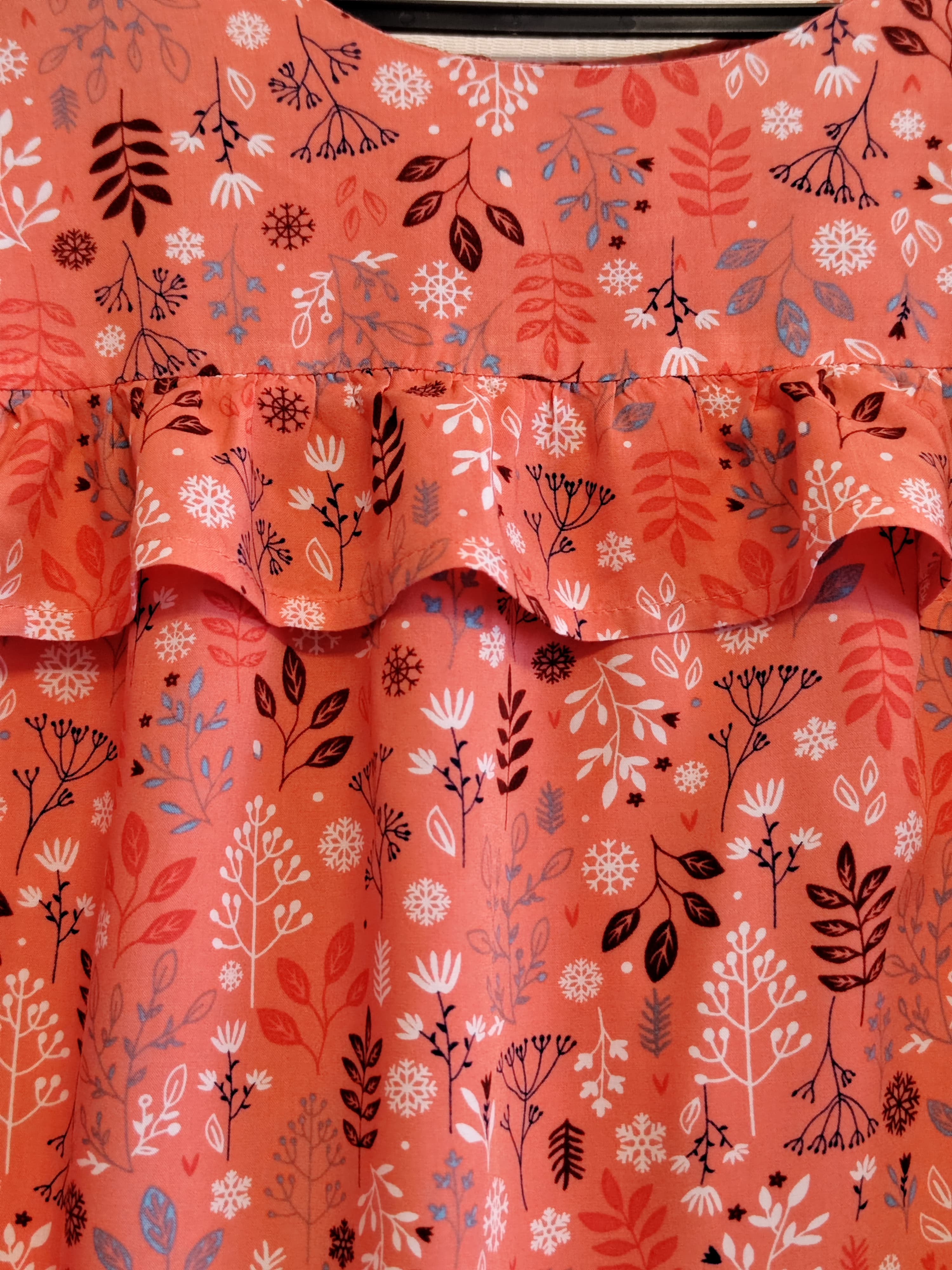 Обрабатывали в режиме «Хлопок» периодически поддавая пар. Некоторое время работа, конечно, отняла, однако зауженный носик позволил относительно легко справиться со всеми конструктивными изысками платья.