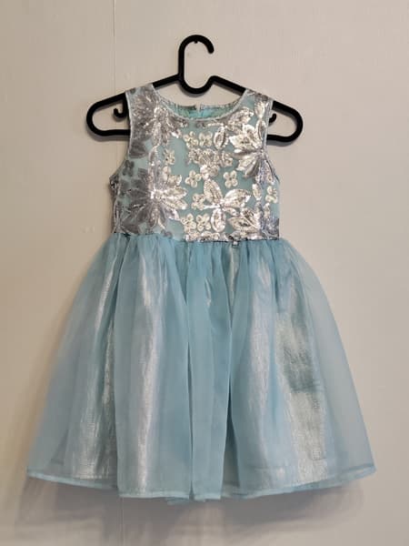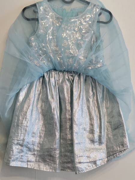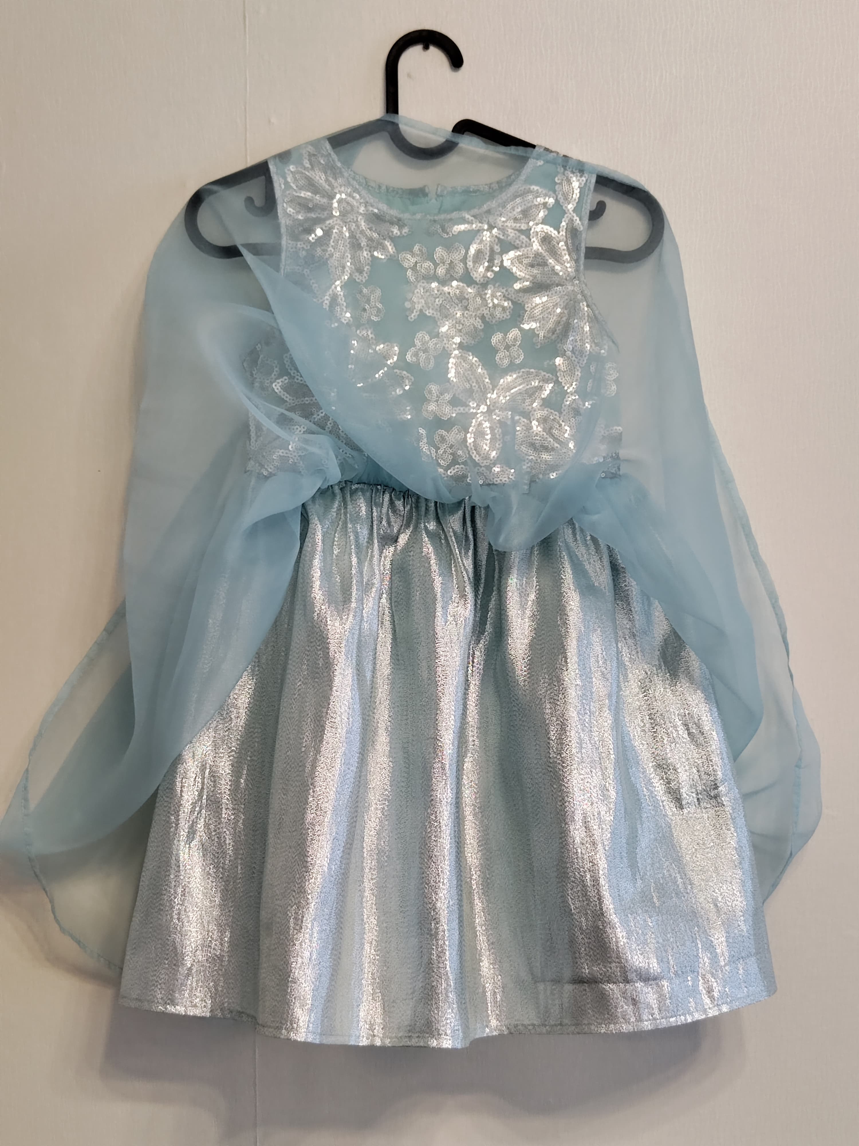Праздничное платье изготовлено из деликатной ткани, также присутствует вышитый узор, не самый простой крой и внешняя юбка из органзы.