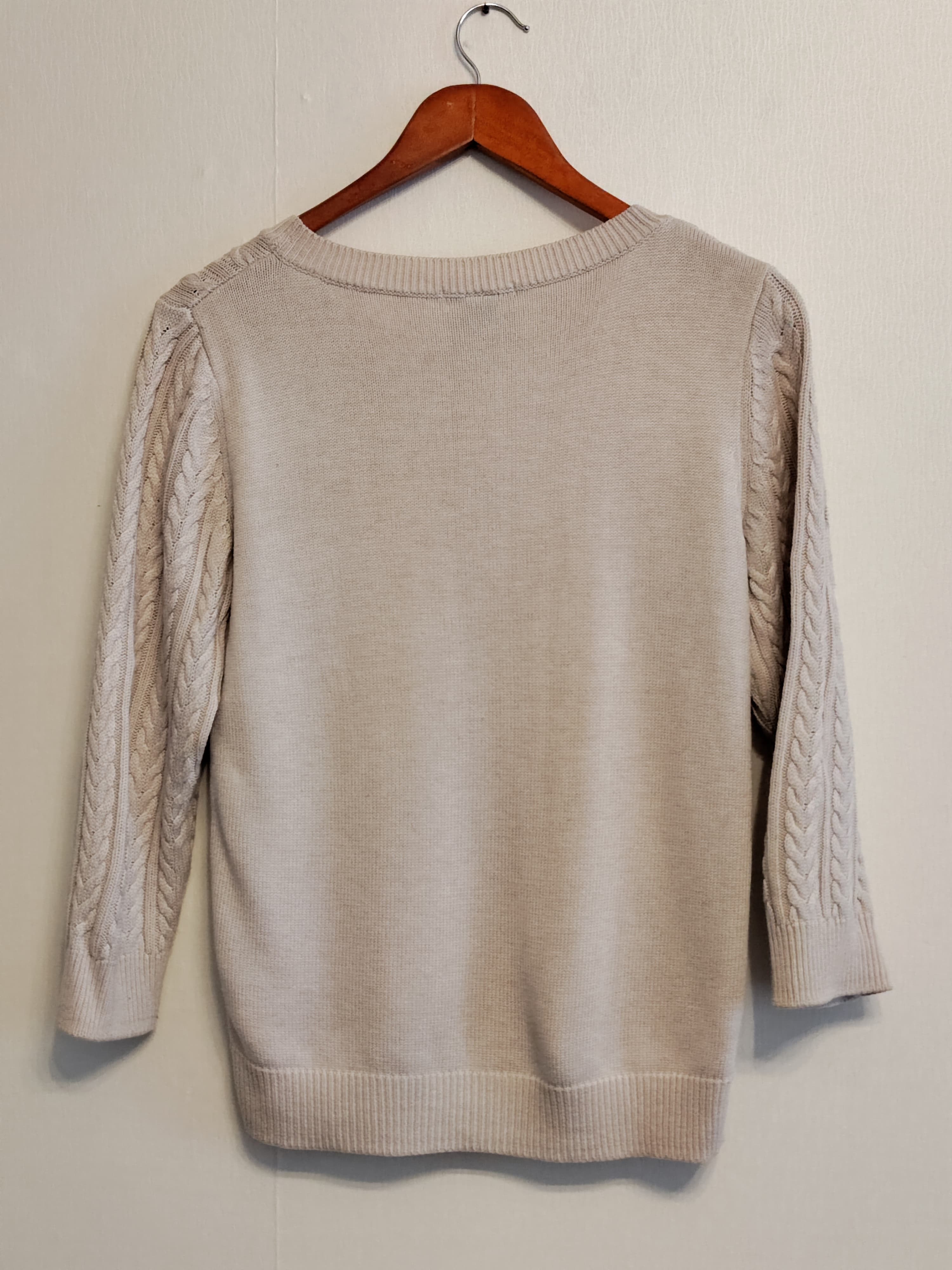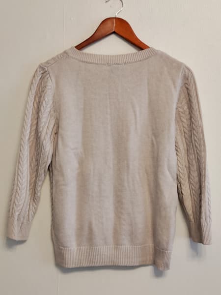 Напоследок протестируем работу прибора в качестве вертикального отпаривателя. Взяли теплый трикотажный пуловер из смешанного полотна, шерсти в нем нет, но зато есть акрил. Что ж, сейчас увидим, как поведет себя эта ткань.