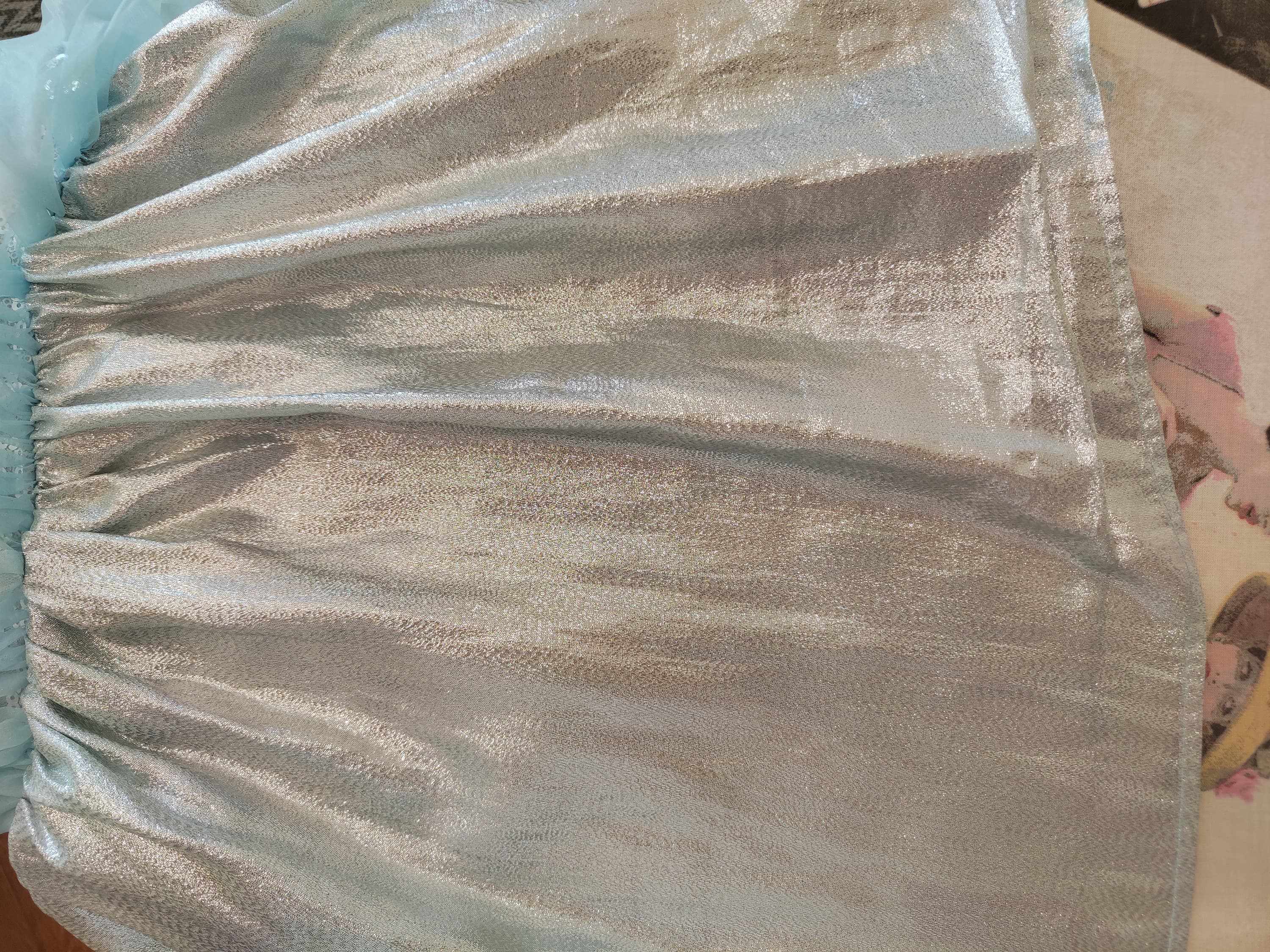 Уточним, что платье не изменило цвет, другой оттенок появился, поскольку фотографировали результаты при изменившимся освещении.