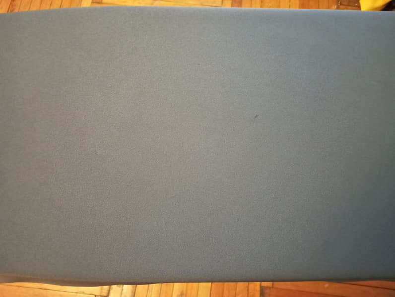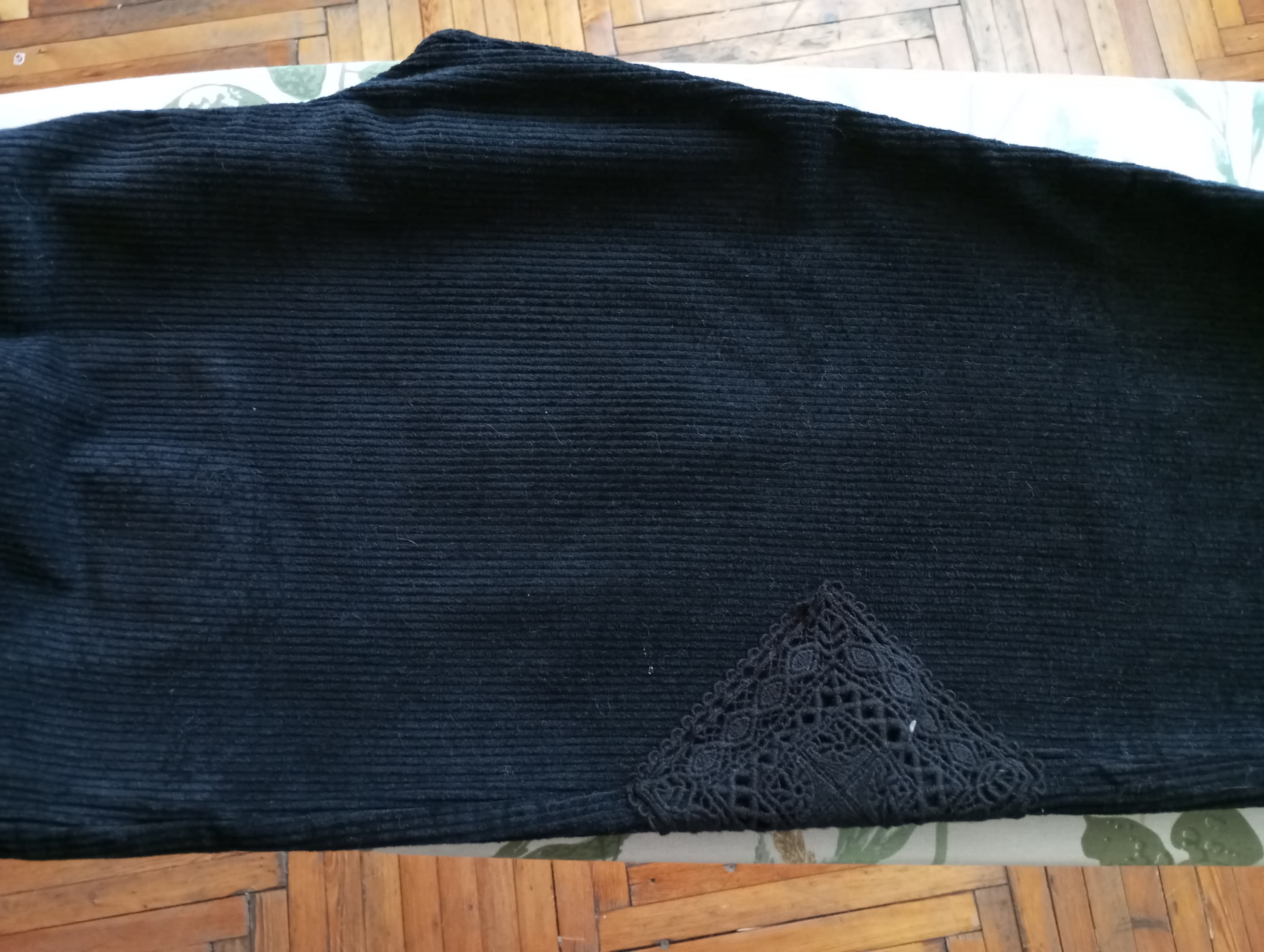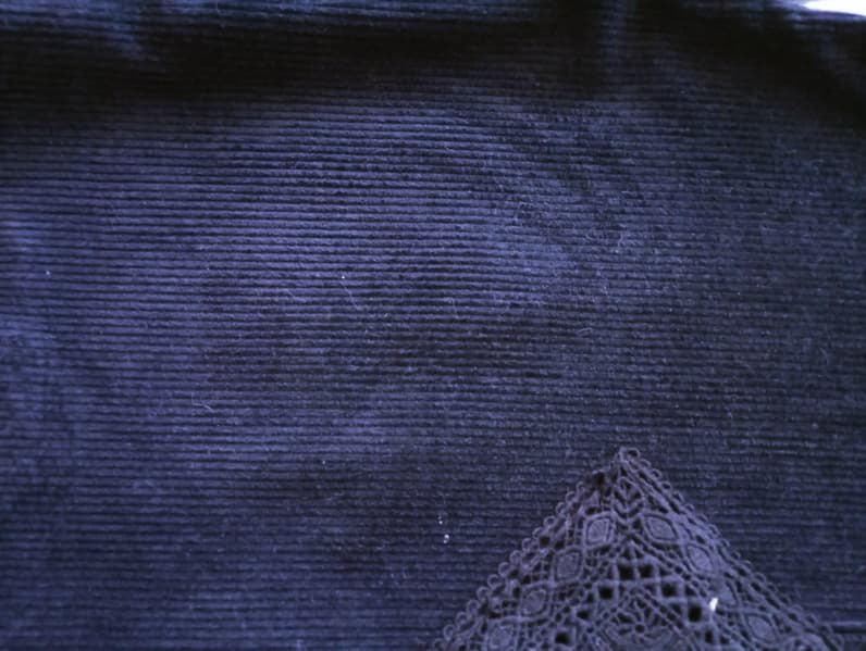 В этот раз выбрали грубый вельвет с крупными рубчиками, в основном не расправляли, а чистили ткань от пыли. Максимальный режим и пар. Сделали специально крупный снимок очищенного материала для большей наглядности.