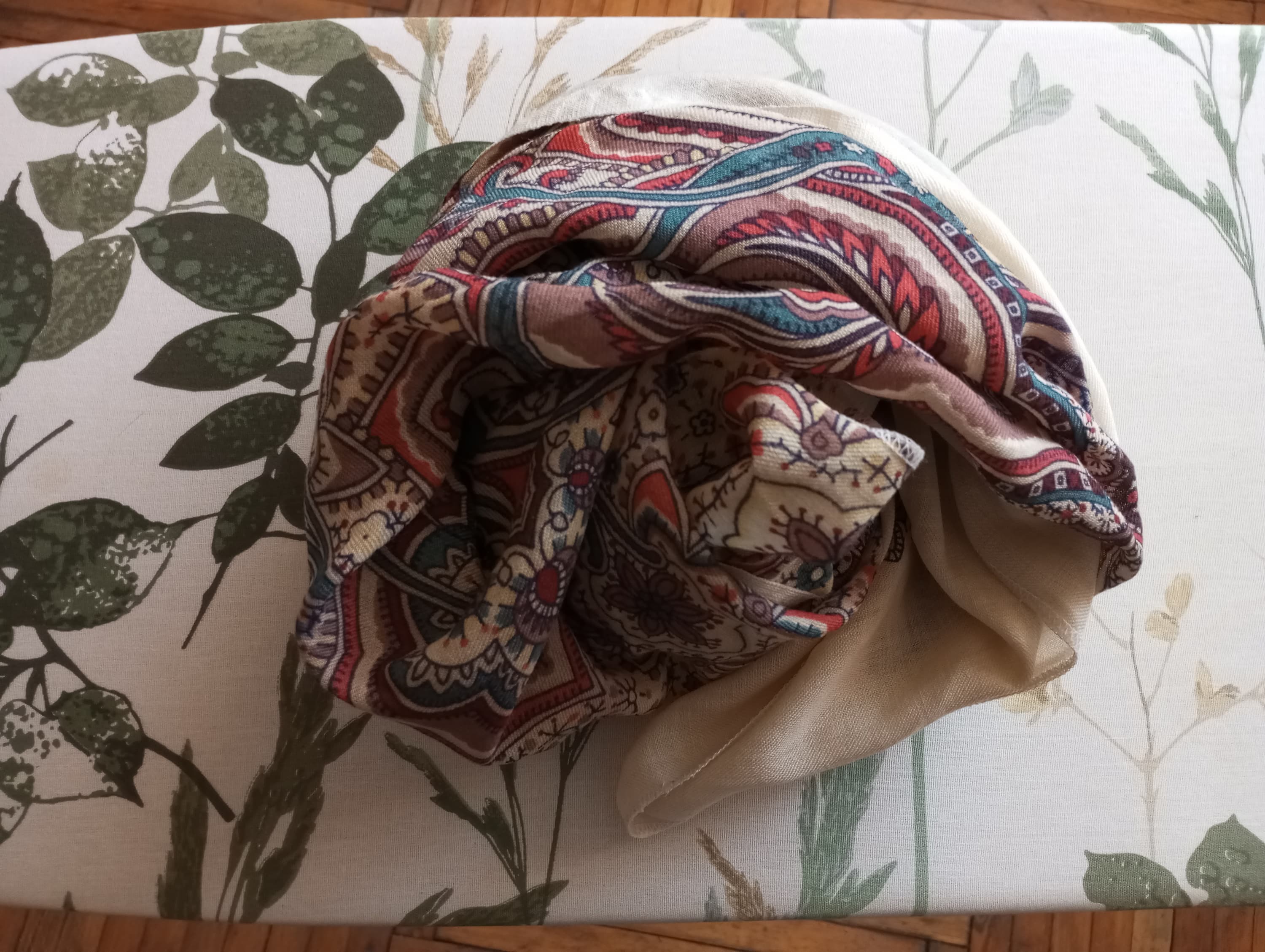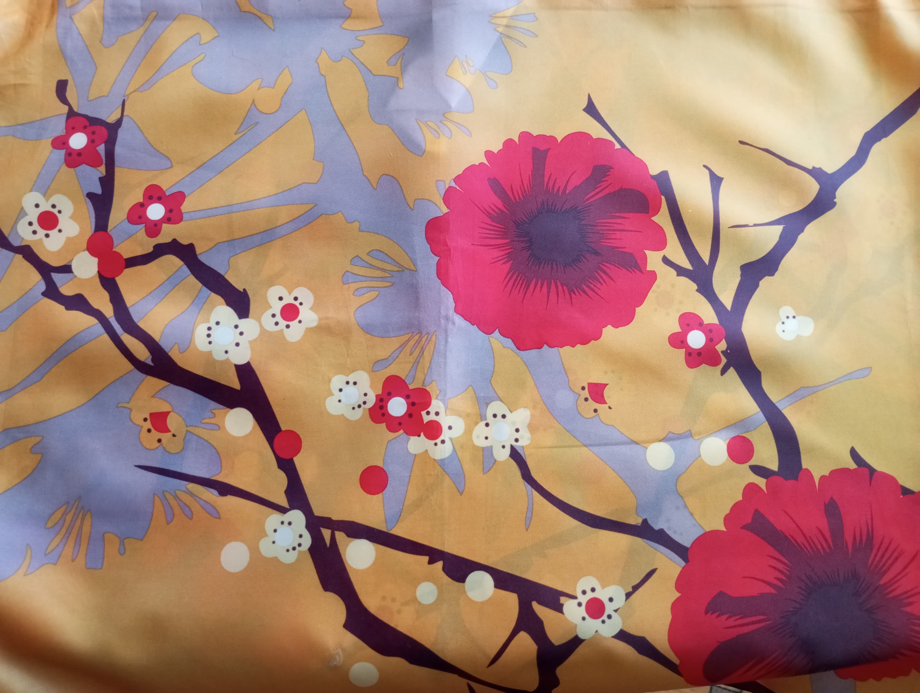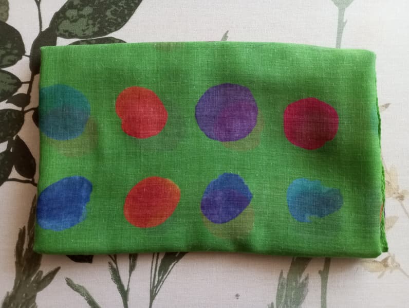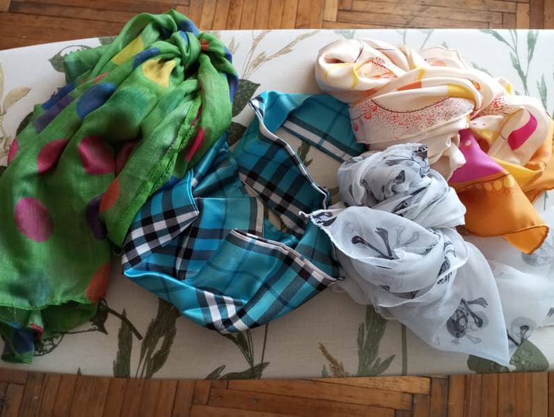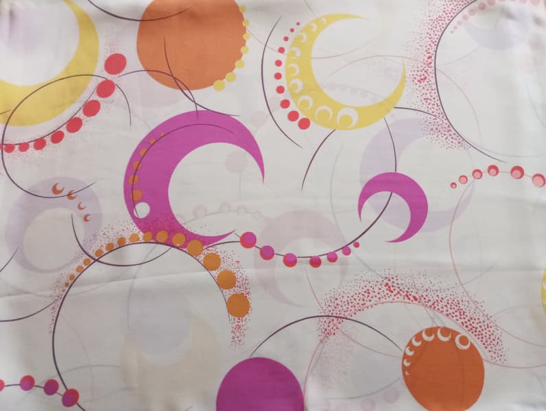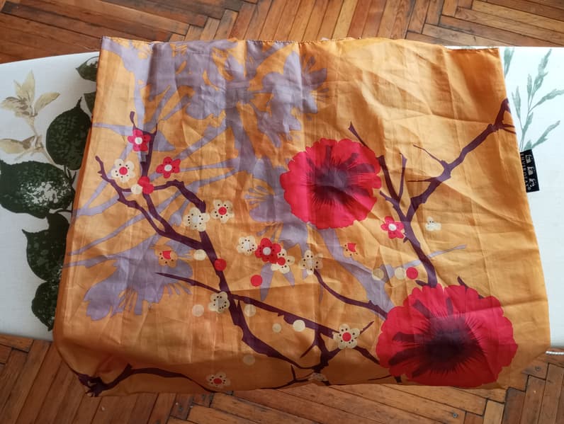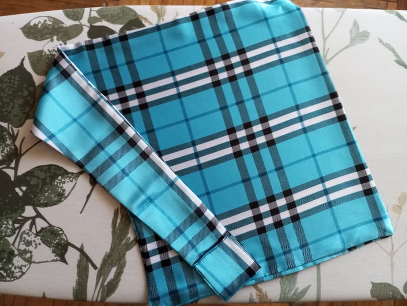 Ткань, которая легко и охотно деформируется и теряет цвет. Задача не только разгладить, но и проверить, как утюг обрабатывает такое. Средний режим, немного пара.