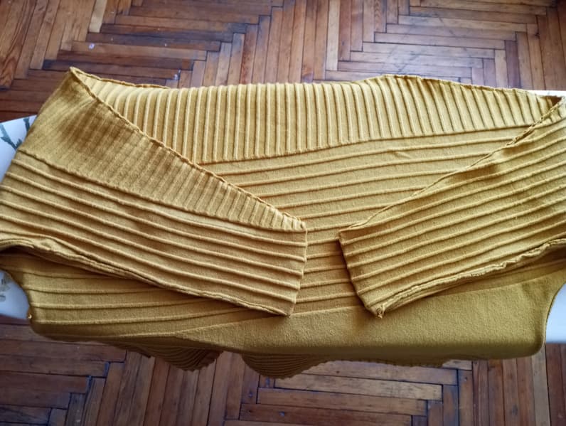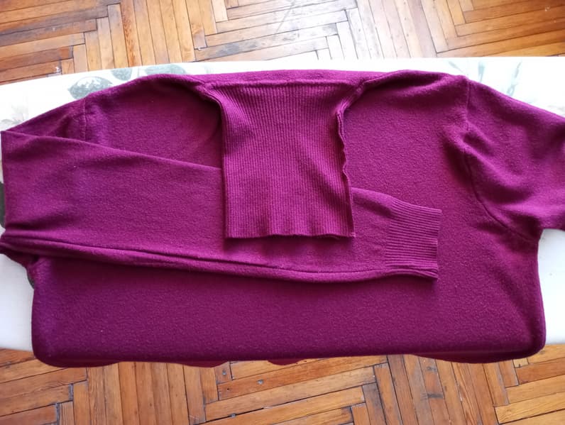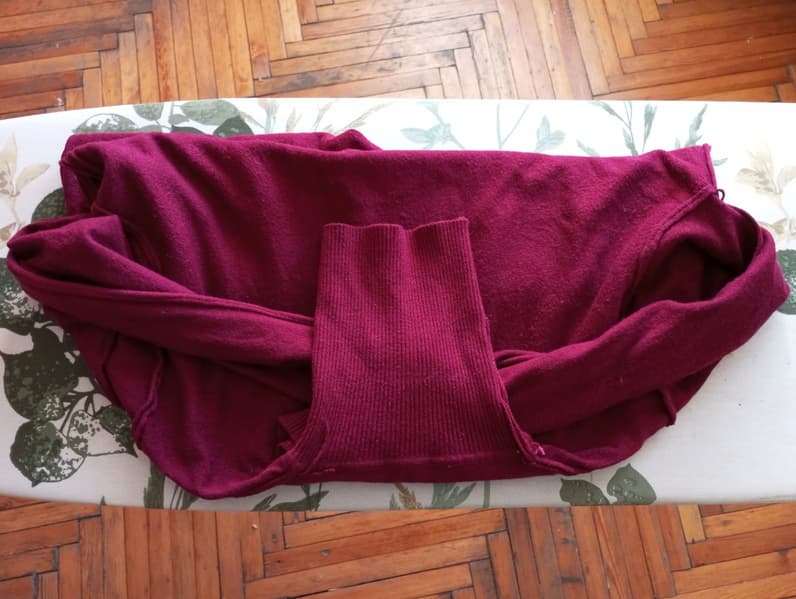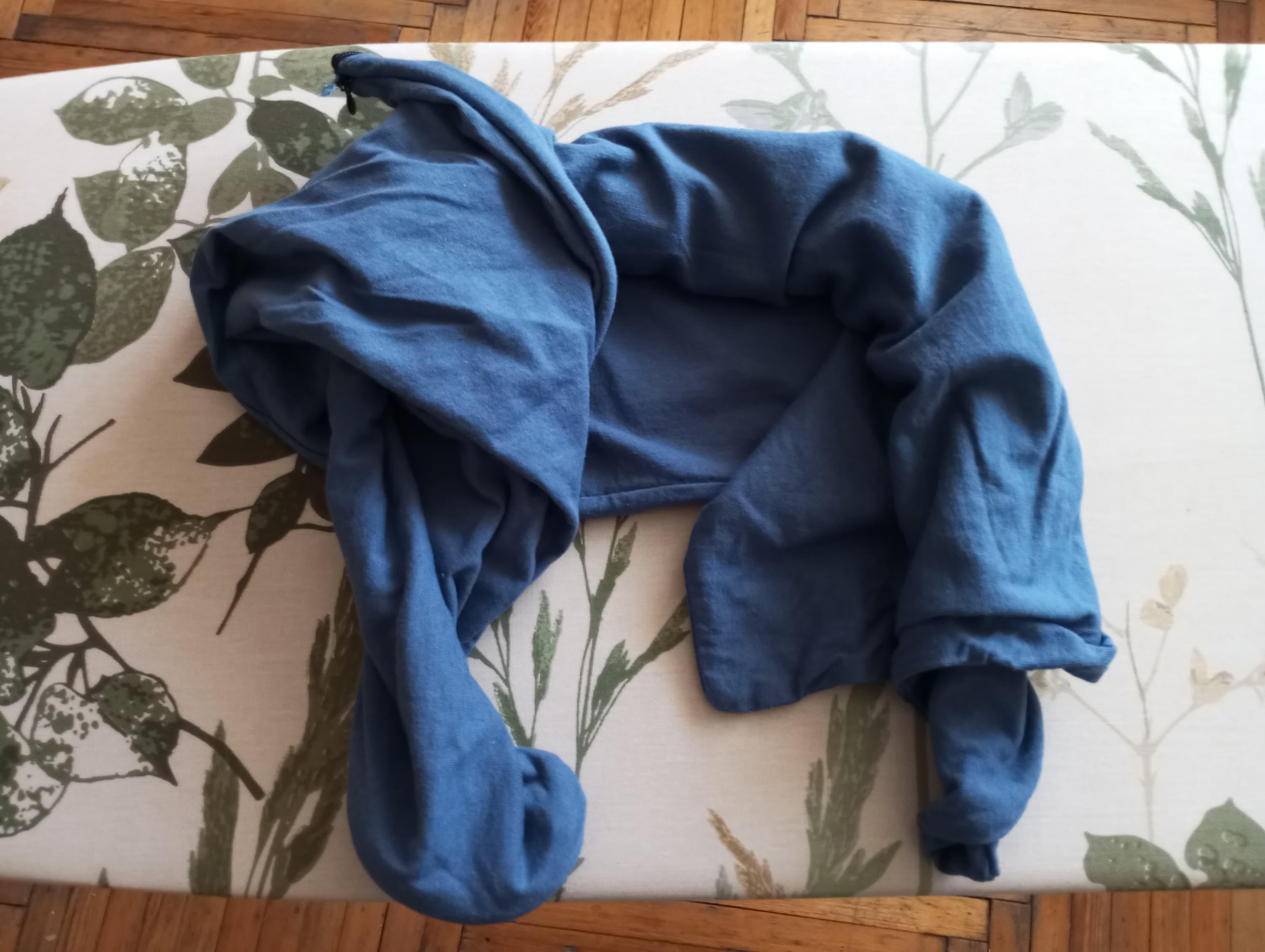 Выбрали для тестирования старую, любимую кофту подростка. Задача была не столько разгладить, сколько облагообразить ткань и вернуть вещи форму. Средний режим, немного пара.