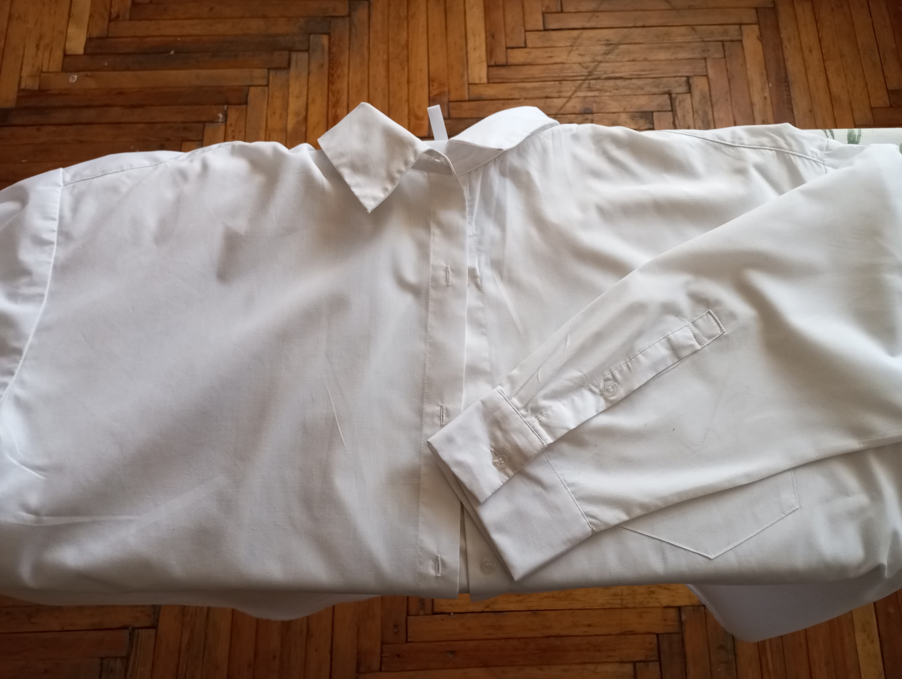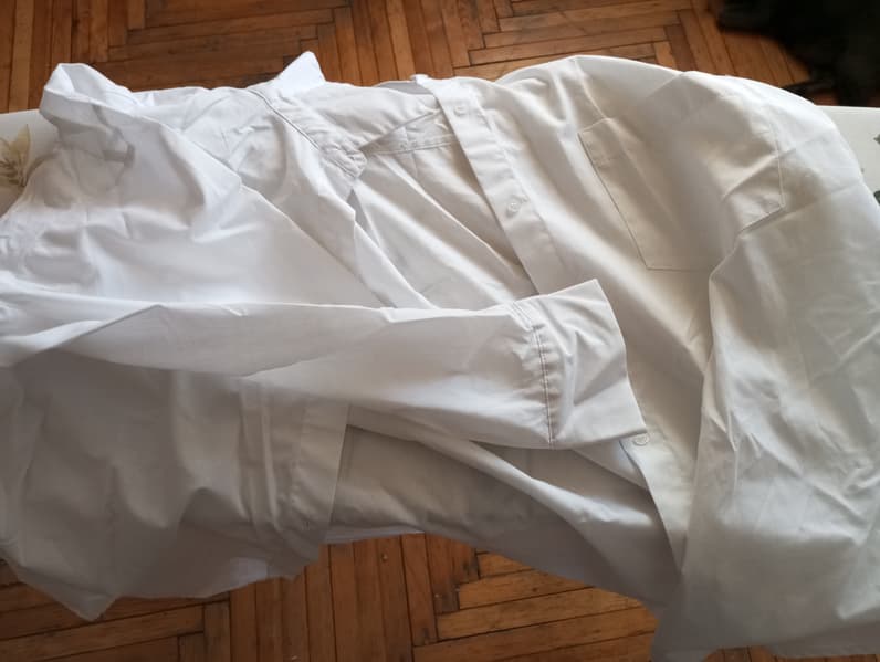 Еще один показательный тест: белое, хлопок с добавлениями, манжеты, складки, ткань, склонная желтеть от тепловой обработки. Максимальный режим и пар.