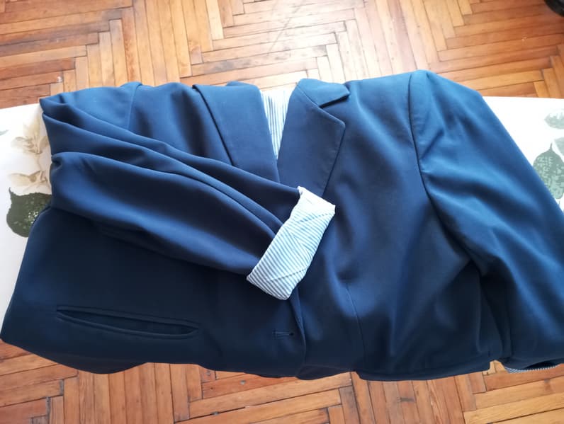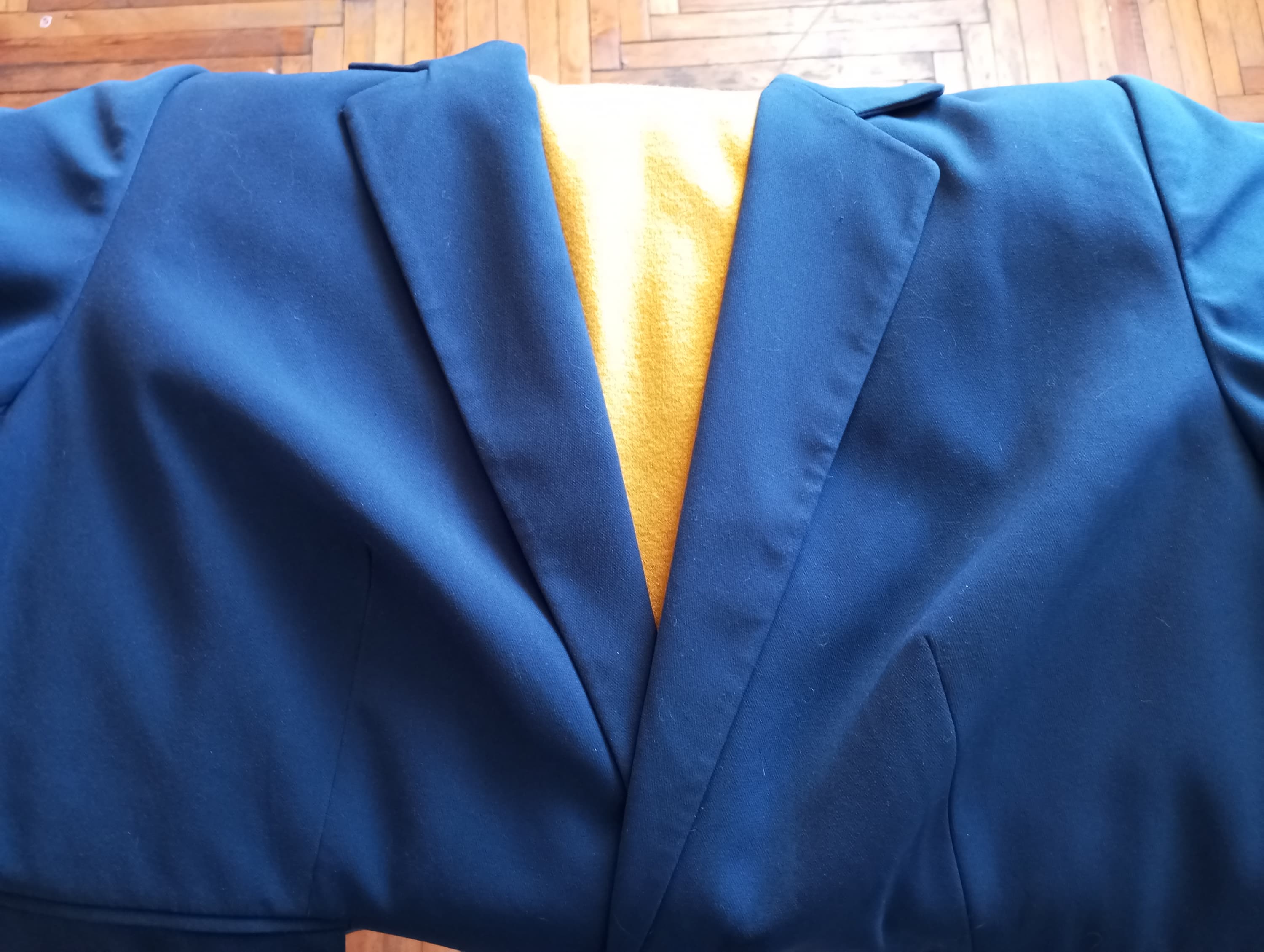 Мы уже описали этот опыт выше. Пиджачная ткань нуждалась в легкой очистке, восстановлении цвета. Утюг неплохо справился с задачей, а чтобы заснять результат, оттенили его желтым бадлоном.