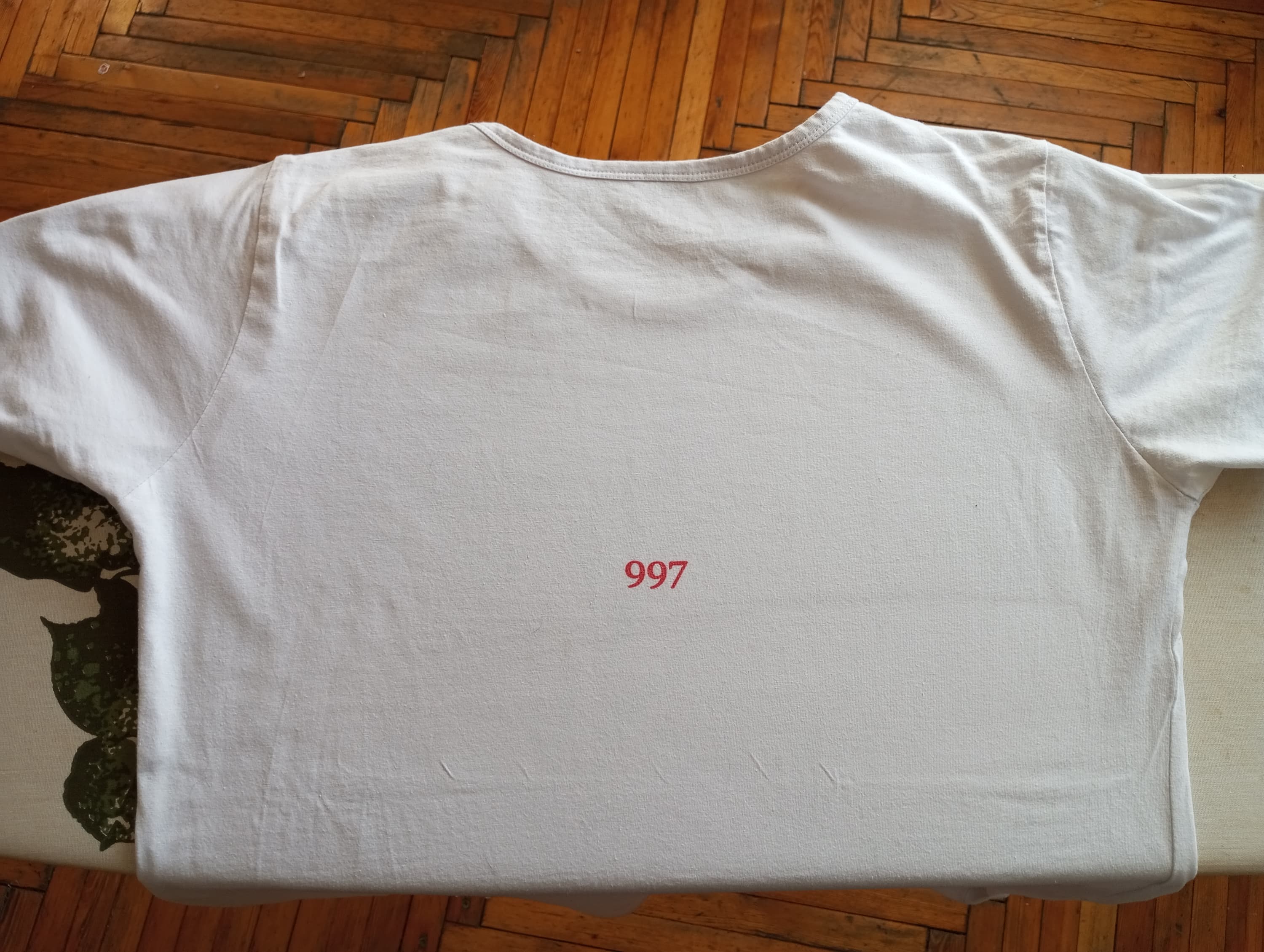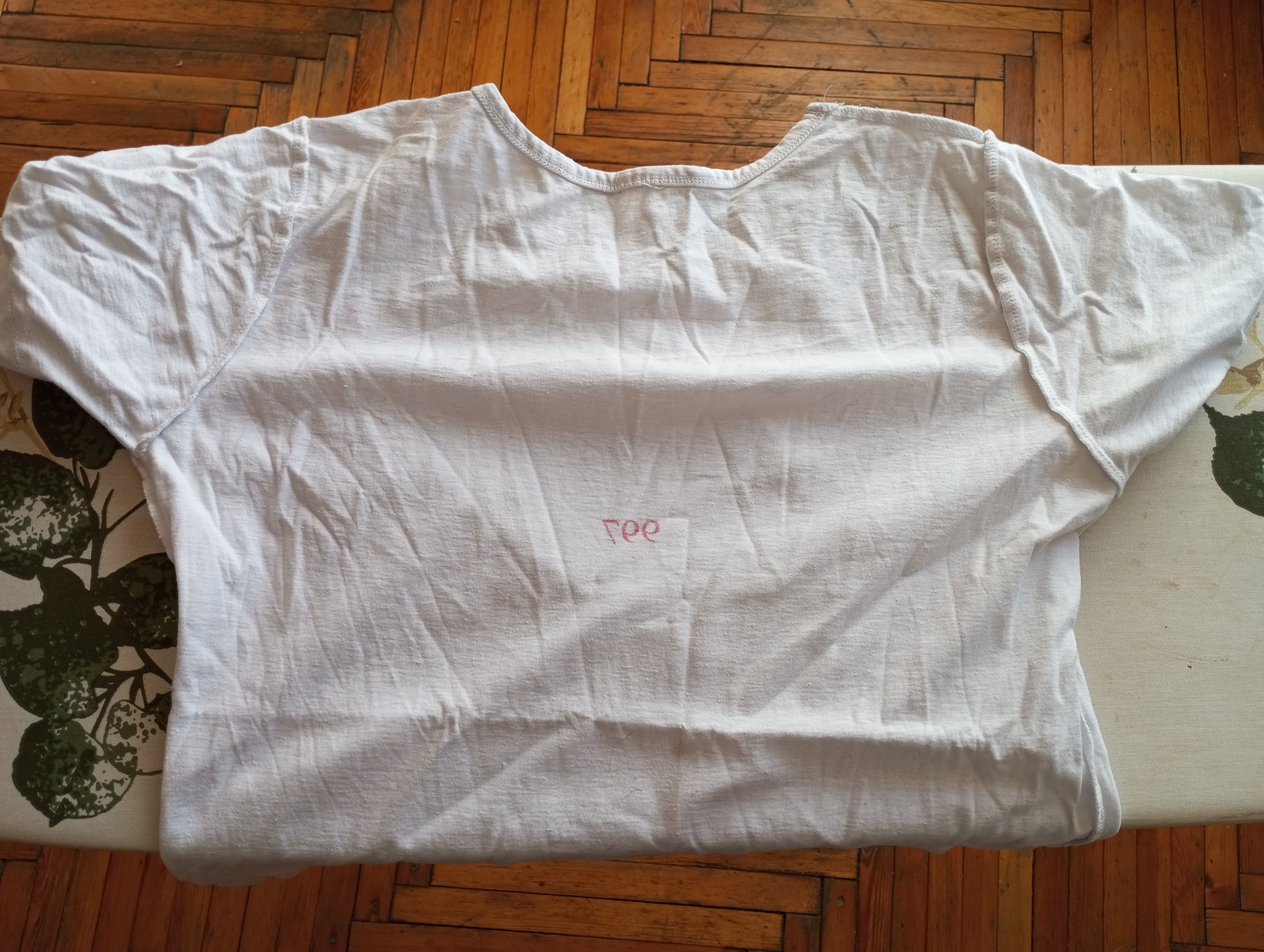 У белого свои проблемы: мятое оно выглядит наиболее неряшливо, легко заглаживается и подвержено желтению от частых тепловых обработок. Выбрали средний режим, разбрызгивание и пар. Отдельно протестировали утюг на деликатность, нанесение не размазалось.