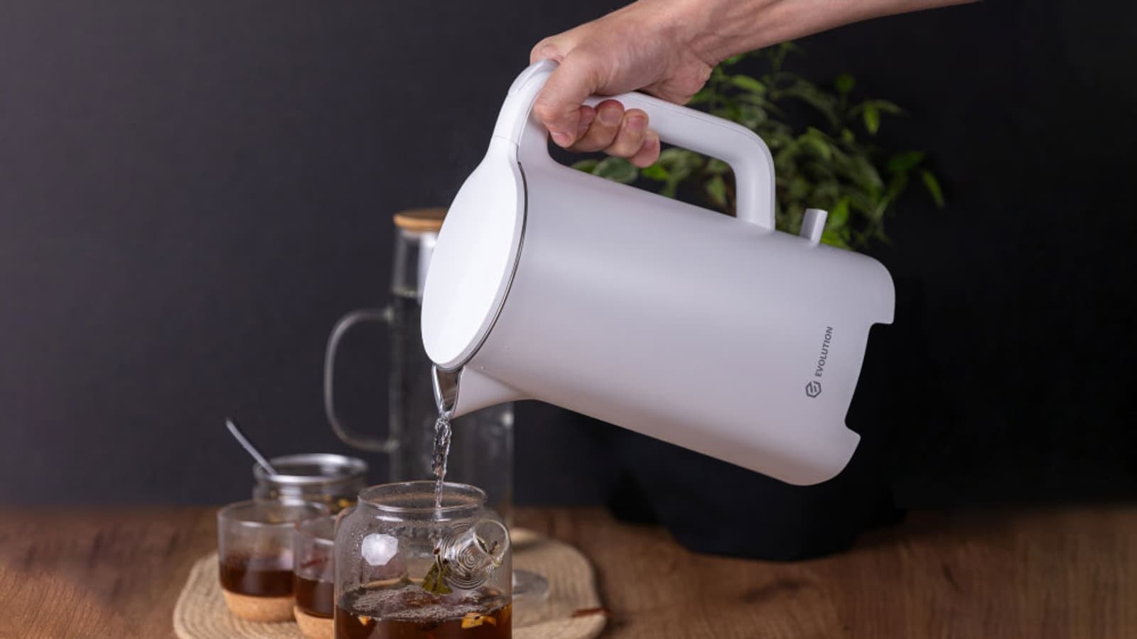 В этом обзоре мы познакомимся с электрическим чайником Evolution KP18171, который за счет изолирующих свойств корпуса предотвращает нагревание наружной стороны и не обжигает руки, сохраняя тепло внутри чайника. Простыми словами — чайник с эффектом термоса.