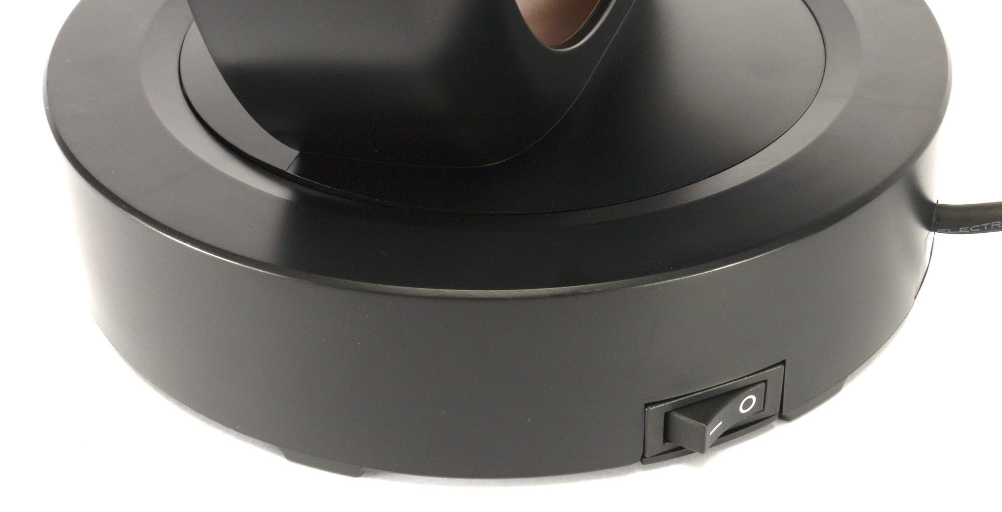 Провод питания выходит с тыльной стороны. Справа на подставке имеется клавиша включения и отключения устройства.