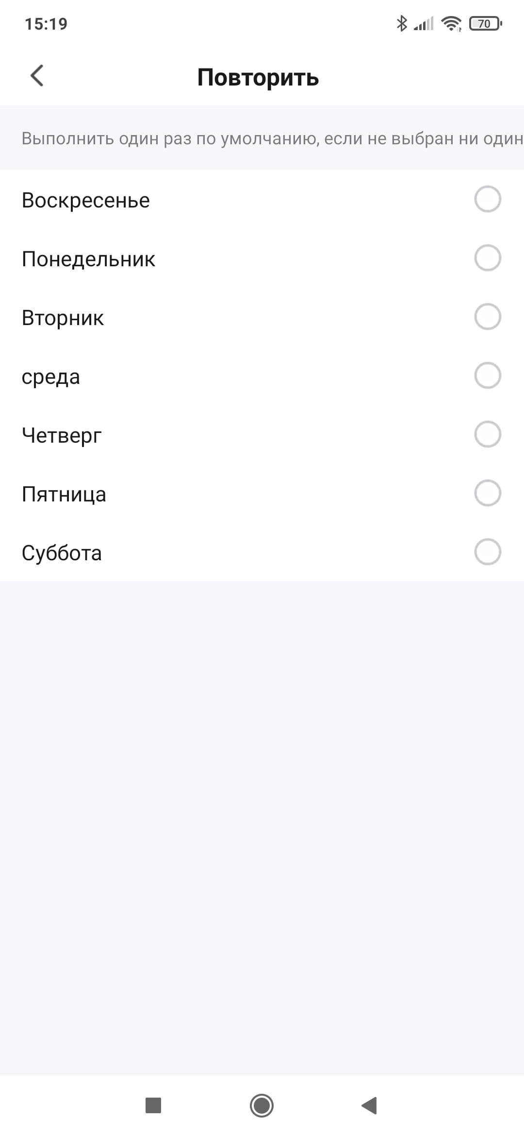 Список голосовых команд повторяет функциональность, представленную в главном окне управления прибором. Тут, помимо выбора режимов, мы можем проверить статус устройства, а также включить и отключить прибор по таймеру.