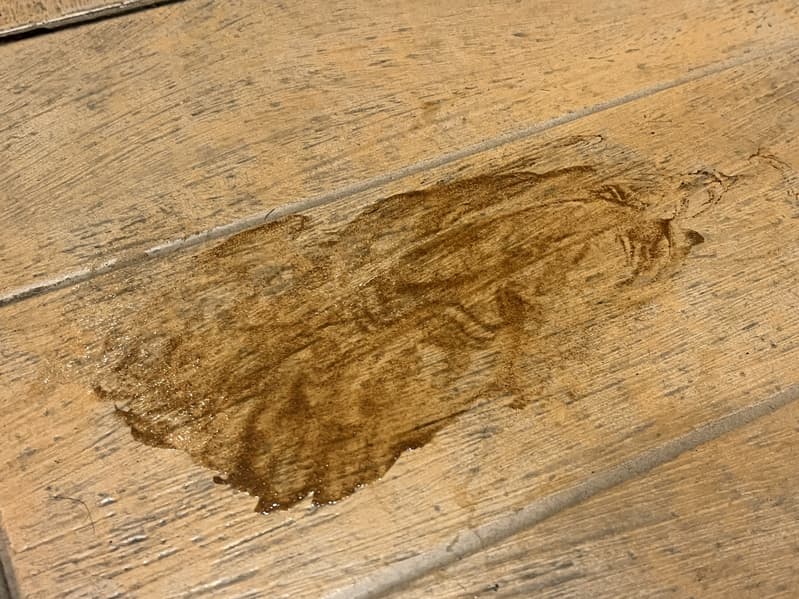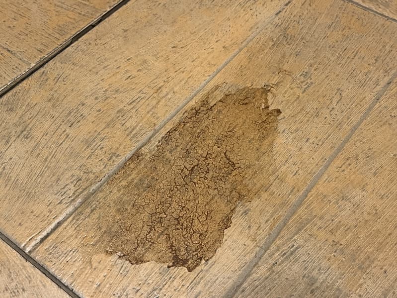 Чтобы проверить насколько хорошо пылесос справляется с загрязнениями, мы подготовили для него небольшое испытание в виде липкого пятна на кафеле от разлитой кока-колы, смешанной с корицей и подсушенной феном.