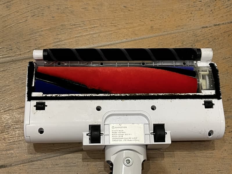 Помимо основного ротора, у щетки имеется еще один несъемный, но подпружиненный подвижный узкий ротор спереди. Он должен позволить с удобством собирать пыль и грязь, находящуюся вплотную к стене, плинтусу или мебели, аккуратно наматывая ее на себя.