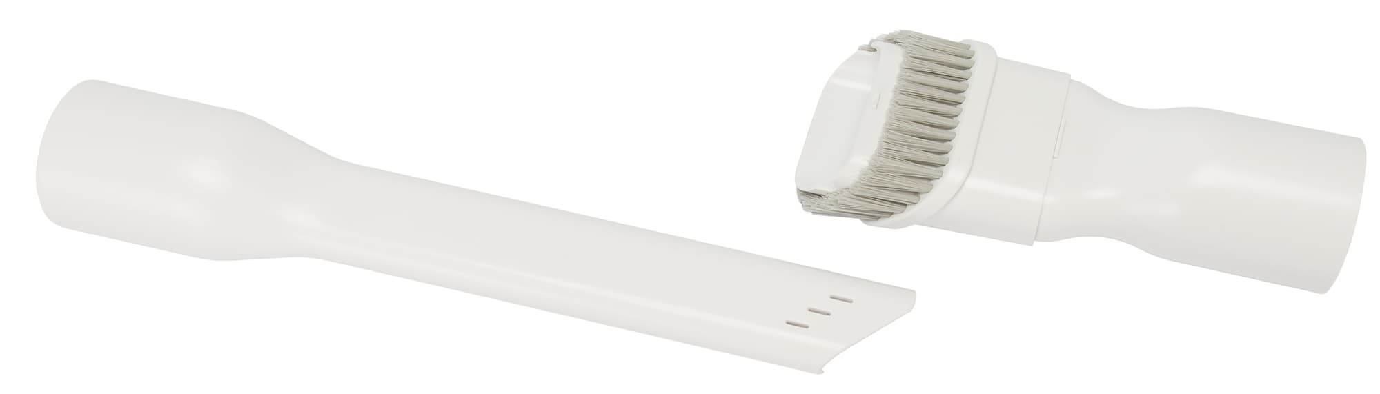 Еще одна дополнительная насадка предназначена для удаления пыли. Она выглядит как небольшая щетка размерами рабочей части 5,5×2,5 см. Отверстие у нее срезано под углом в 45°.