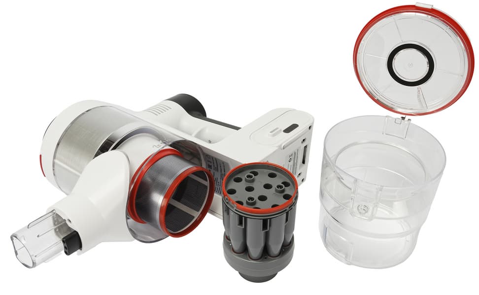 При сборке все действия интуитивно понятны (можно обойтись и без инструкции), а вот если пылесос требуется разобрать — то некоторые моменты могут оказаться не столь очевидны. Например, у нашего пылесоса имеется несъемный металлический фильтр внутри пылесборника, чего мы сначала не поняли и тщетно пытались его вынуть. Благодаря инструкции узнали, что красная ручка на верхушке пылесборника подпружинена и помогает вытряхивать весь мусор и пыль при ее потягивании наверх, и таким образом эффективно очищается и металлическая решетка.