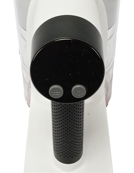 Пылесос управляется двумя кнопками, расположенными в верхней части ручки.