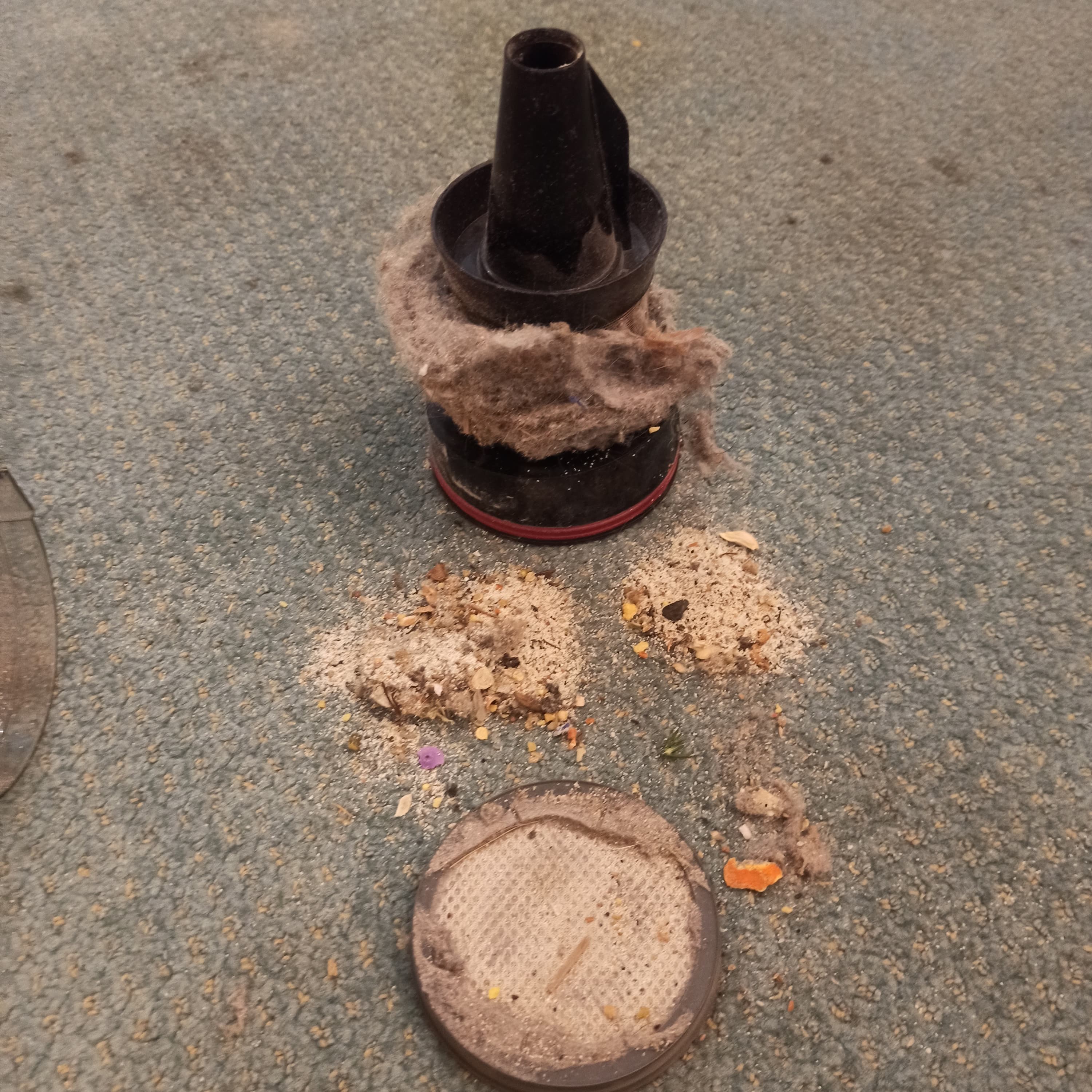 - при невнимательной установке циклонных фильтров (а иногда и просто так) может просыпаться мусор из пылесборника при его снятии с основного блока, а иногда и просто высыпаться через сами насадки