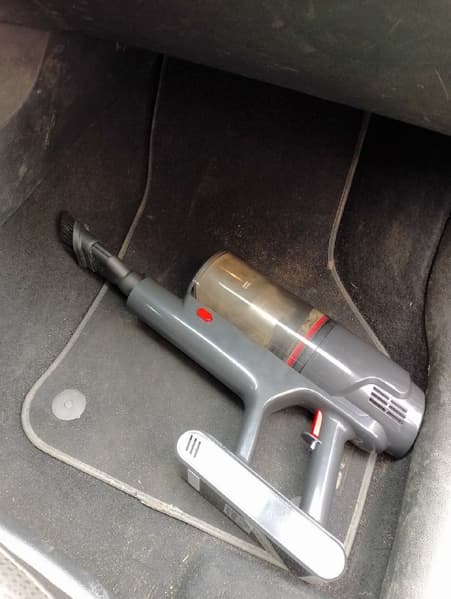 Одной зарядкой за 10 минут в режиме турбо можно хорошо пройти весь, даже весьма грязный салон, мощности пылесоса хватает. Результат не хуже, чем у штатных пылесосов на мойках самообслуживания. Пылесос отлично показал себя в работе на всех поверхностях, в том числе, он в состоянии убрать песок и мелкие камни с текстильных ковриков.