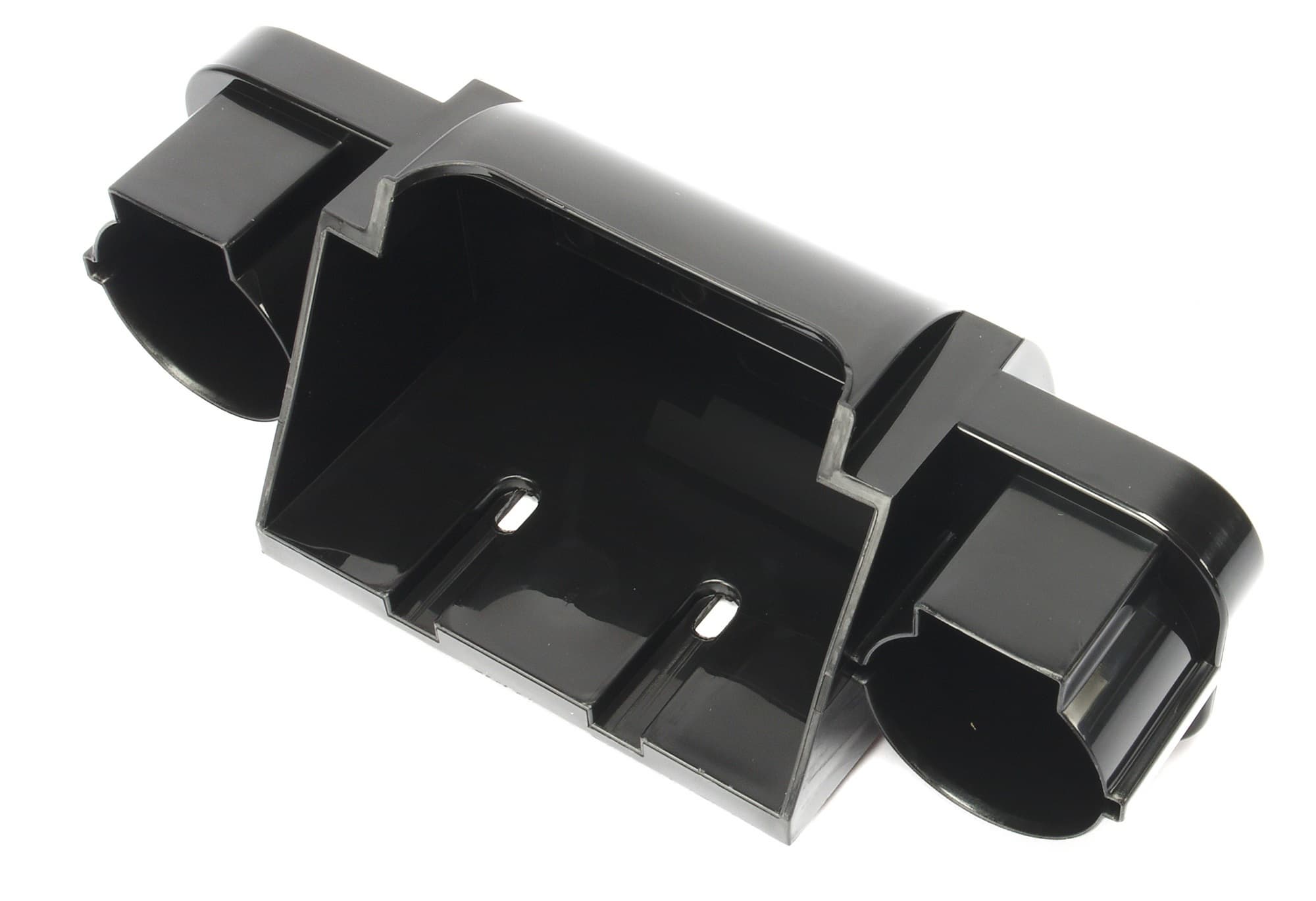 Это приспособление дает возможность хранить пылесос на стене, к которой по замыслу производителя он должен быть закреплен через отверстия на два самореза. Саморезы (2,5 см) с дюбелями также идут в комплекте. Если рядом с этим модулем на стене будет располагаться розетка, то пылесос можно хранить и подзаряжать на этом парковочном настенном модуле, так он не занимает много места и всегда под рукой, когда это необходимо. Также по бокам модуля имеются два места для хранения насадок.
