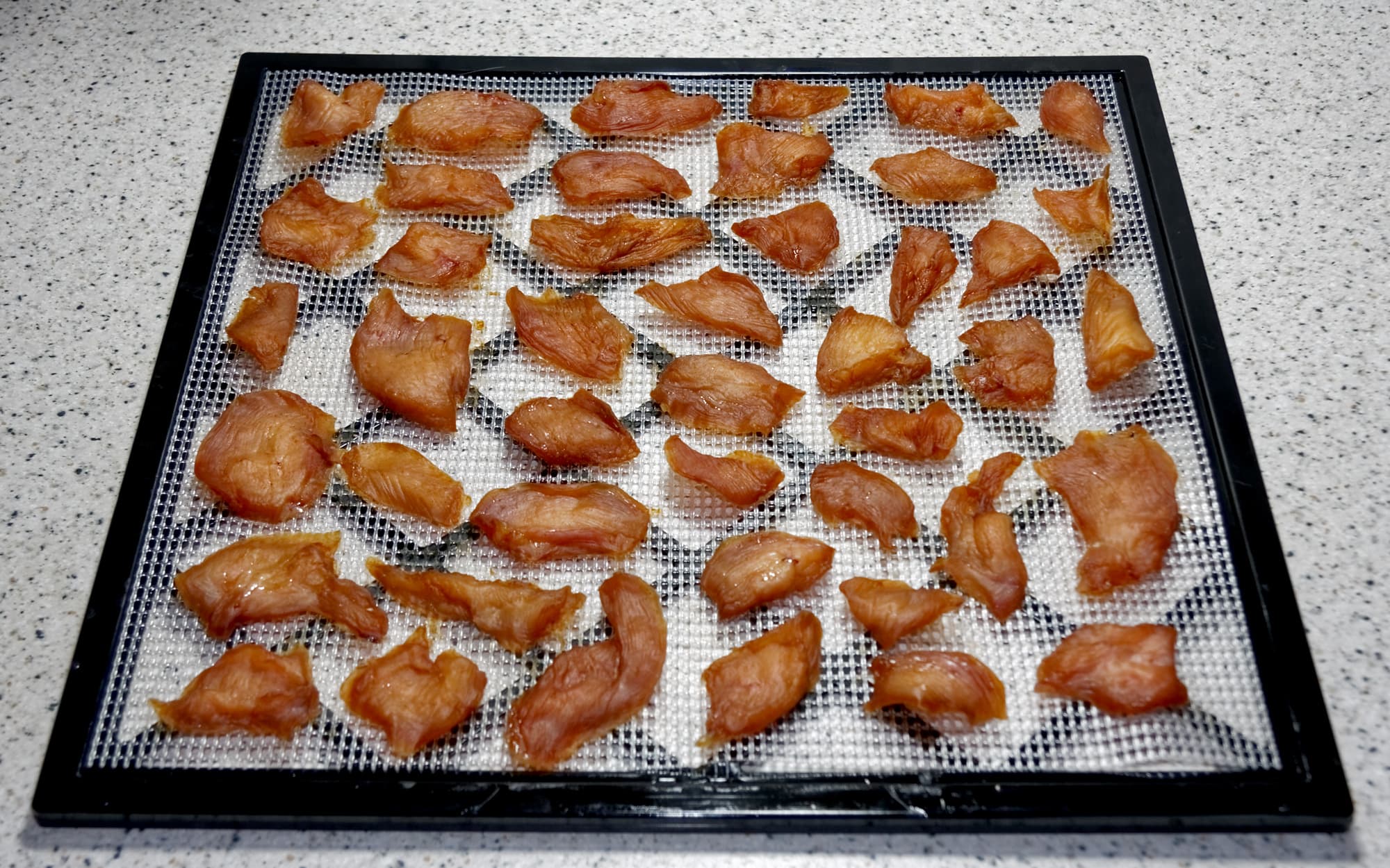 И свинина, и курятина оказались равномерно просушены до нужной консистенции идеального вяленого мяса (нет влаги, куски мяса гнутся, но не ломаются).