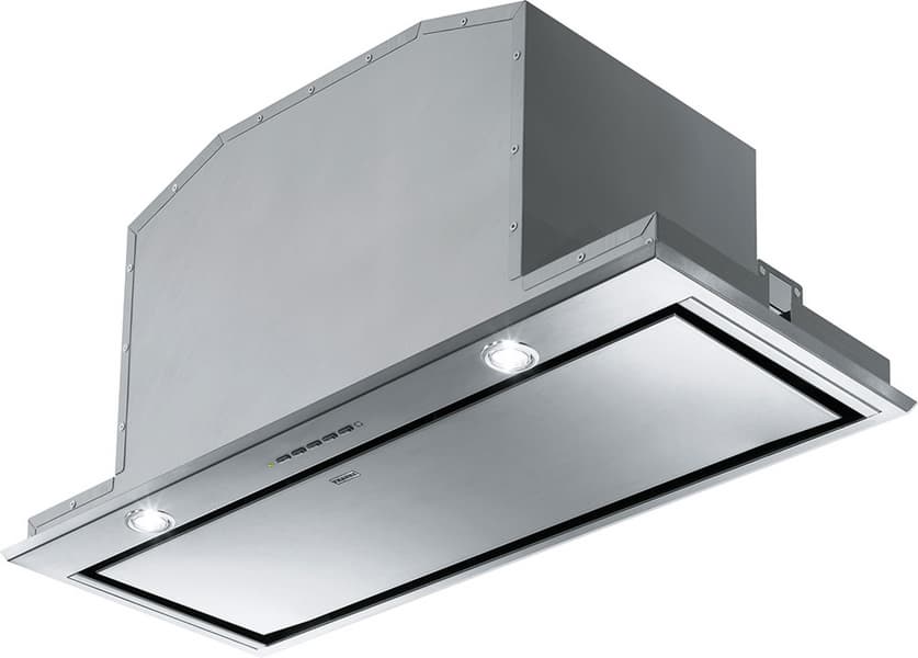 - Встраиваемый: такие вытяжки монтируются внутри кухонной подвесной мебели, благодаря чему их можно полностью скрыть от людских глаз. Встраиваемые вытяжки чаще всего можно встретить на небольших кухнях — там, где приходится экономить место.