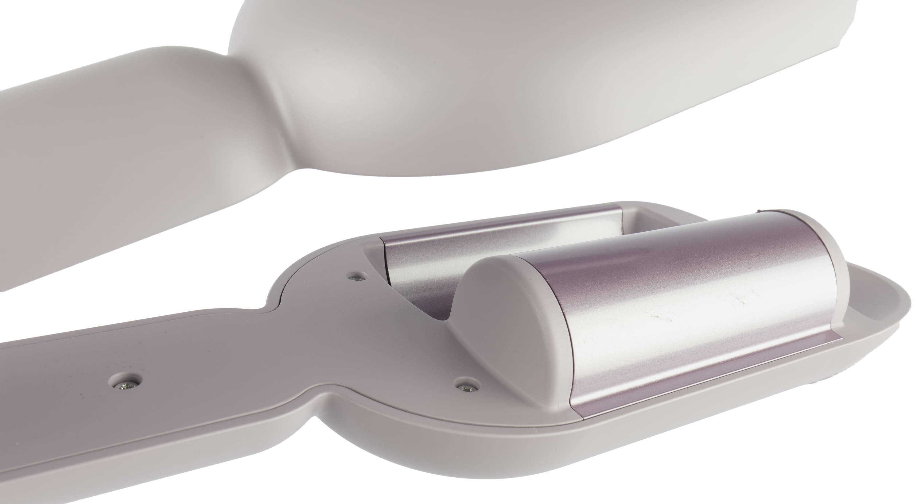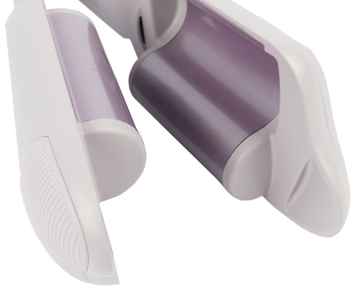 Прибор выполнен в мягком сиреневом цвете и имеет традиционную форму щипцов с чуть более широкой поверхностью для нагревательных пластин. Условно его можно разделить на две части: ручку с панелью управления и платформу с нагревательными пластинами.