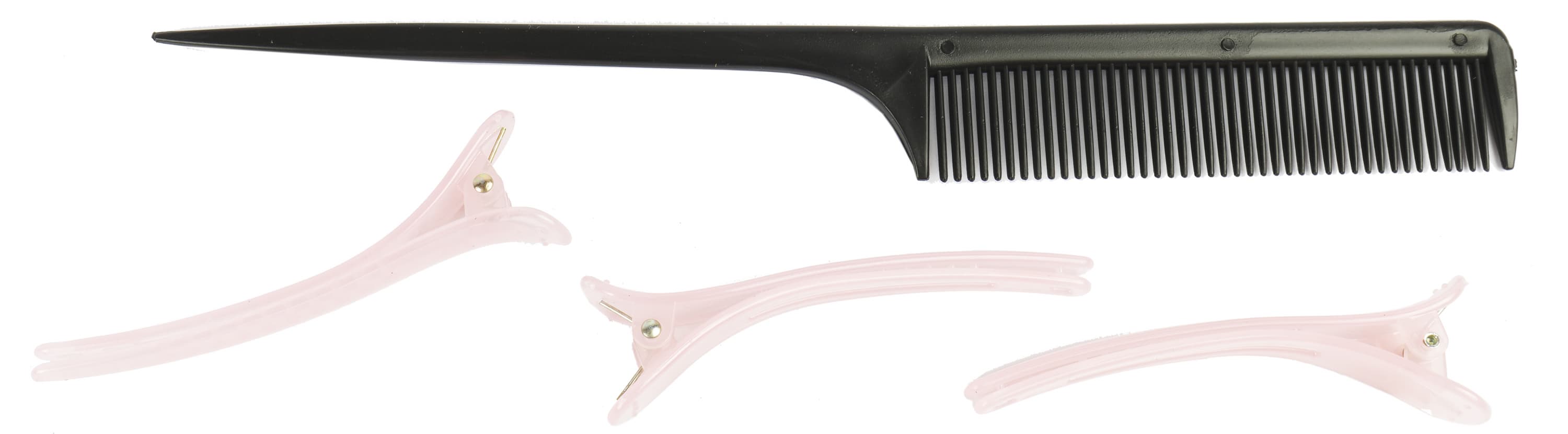 В комплектацию прибора входят заколки и расческа, их использование тоже глубоко индивидуально. Расческа мелкая, тщательно распределяющая волос. Заколки широкие, с надежными зажимами.