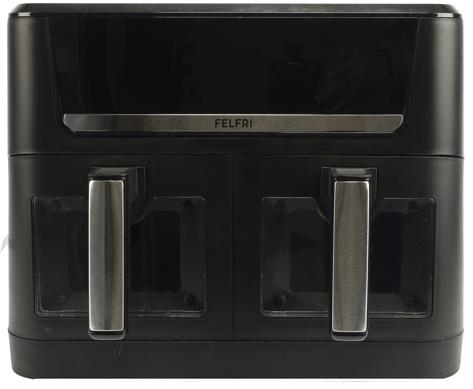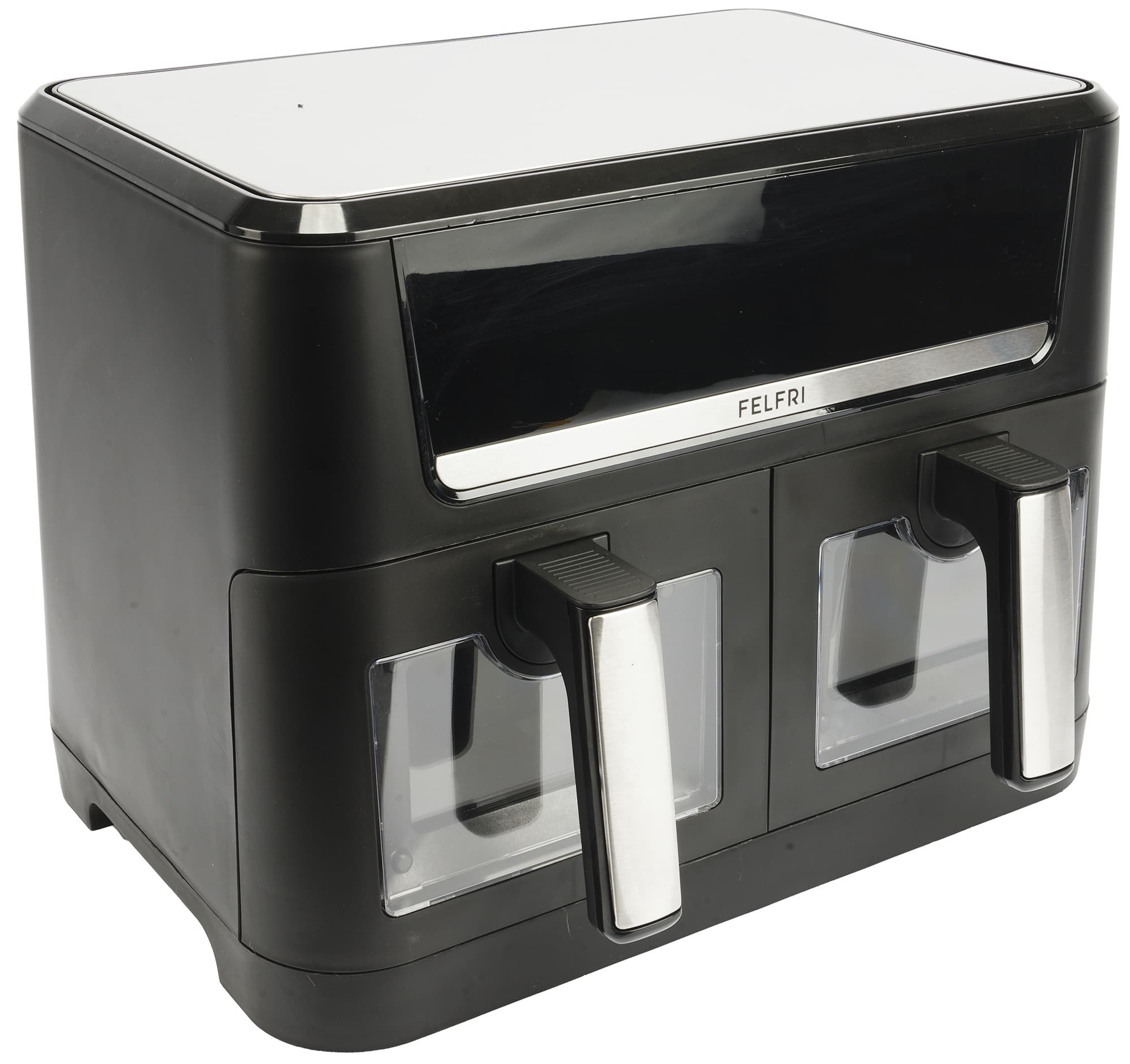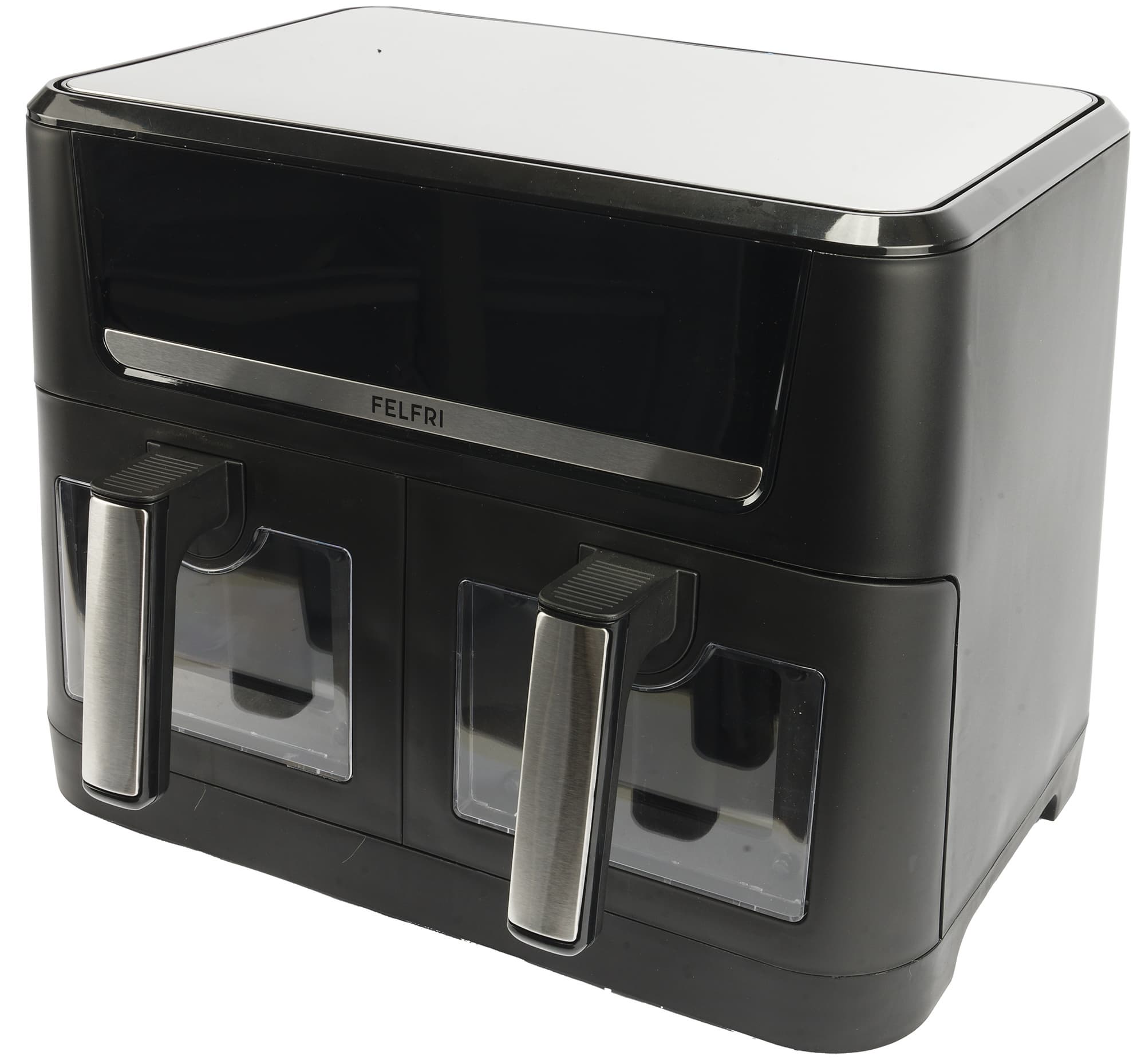Не так давно мы тестировали аэрогриль Felfri FF-AF-06, теперь же к нам в руки попал Felfri FF-AF-04 — буквально старший брат прежнего прибора. Наш сегодняшний гость отличается в два раза бо́льшим размером, наличием второго лотка для приготовления блюд, высокой мощностью и красочной сенсорной панелью управления.