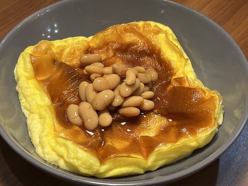 Мы добавили к нему белую фасоль в томатном соусе и прекрасно позавтракали.