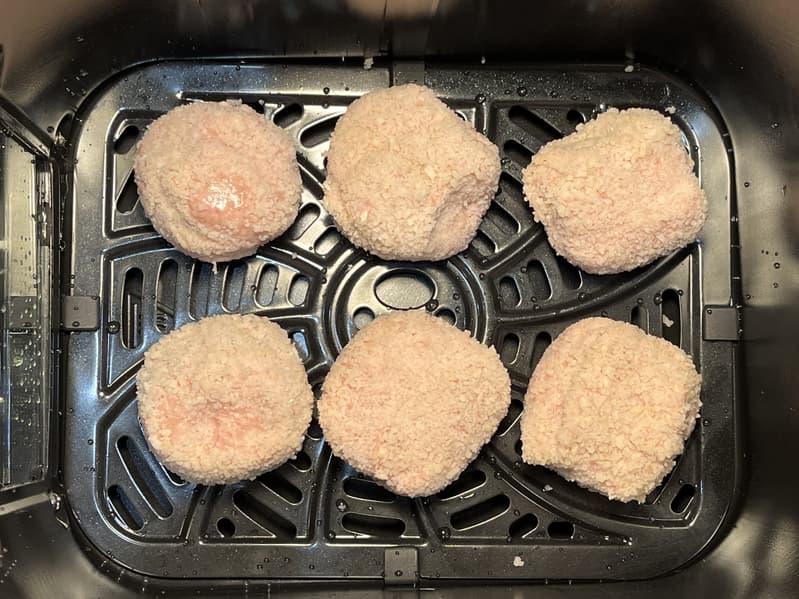 Котлеты у нас были охлажденные, их мы поместили в чашу на решетку и установили программу «Крылья» с температурой 180 градусов, также на 20 минут.