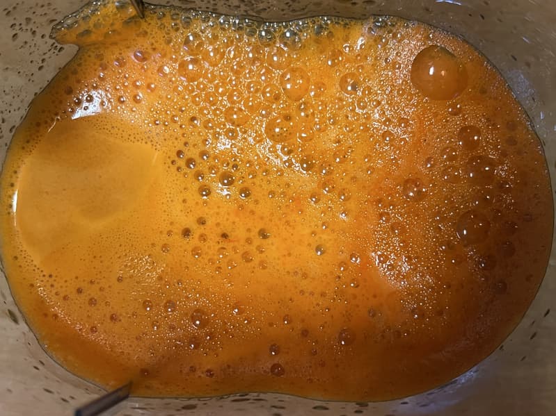 У нас получился целый большой стакан яркого и ароматного сока с большим количеством пенки.