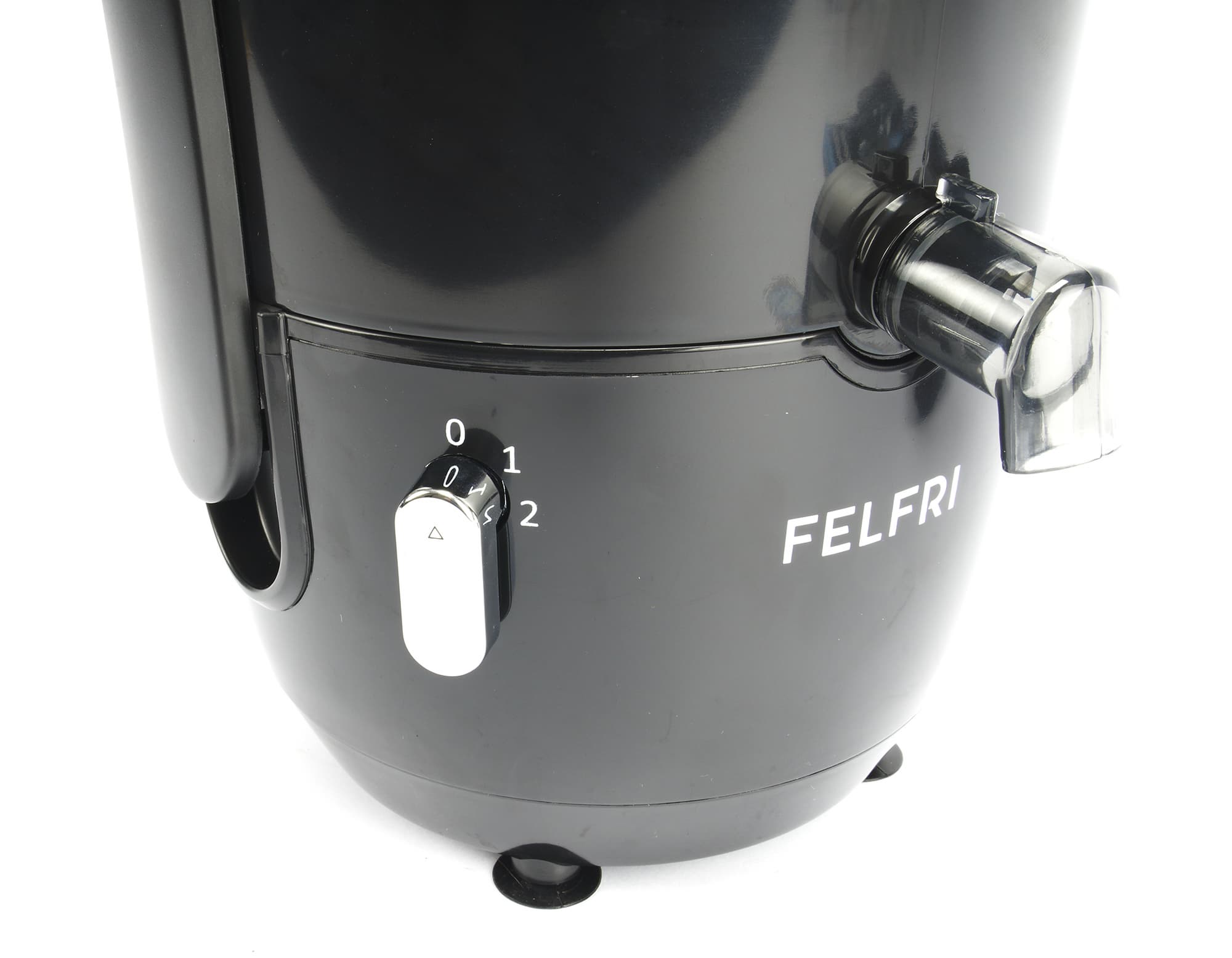 Две скорости работы позволяют адаптировать процесс отжима под разные типы продуктов. Фильтр из нержавеющей стали с нитрид-титановым покрытием обеспечивает чистоту сока, к тому же уменьшая вероятность его окисления, а защита от перегрева гарантирует безопасность использования. Съемные детали легко моются, что упрощает уход за устройством. Компактный и эргономичный дизайн делает Felfri FF-J-10 удобной в хранении и эксплуатации.