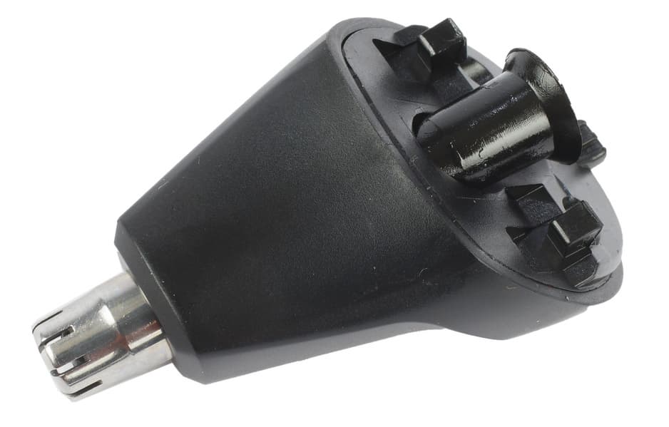 Сняв насадку, мы можем увидеть механизм, передающий вращающий момент от мотора к ножам — это обычный асимметричный металлический штырек. Тут же видны защелки, с помощью которых насадки фиксируются на своем месте.