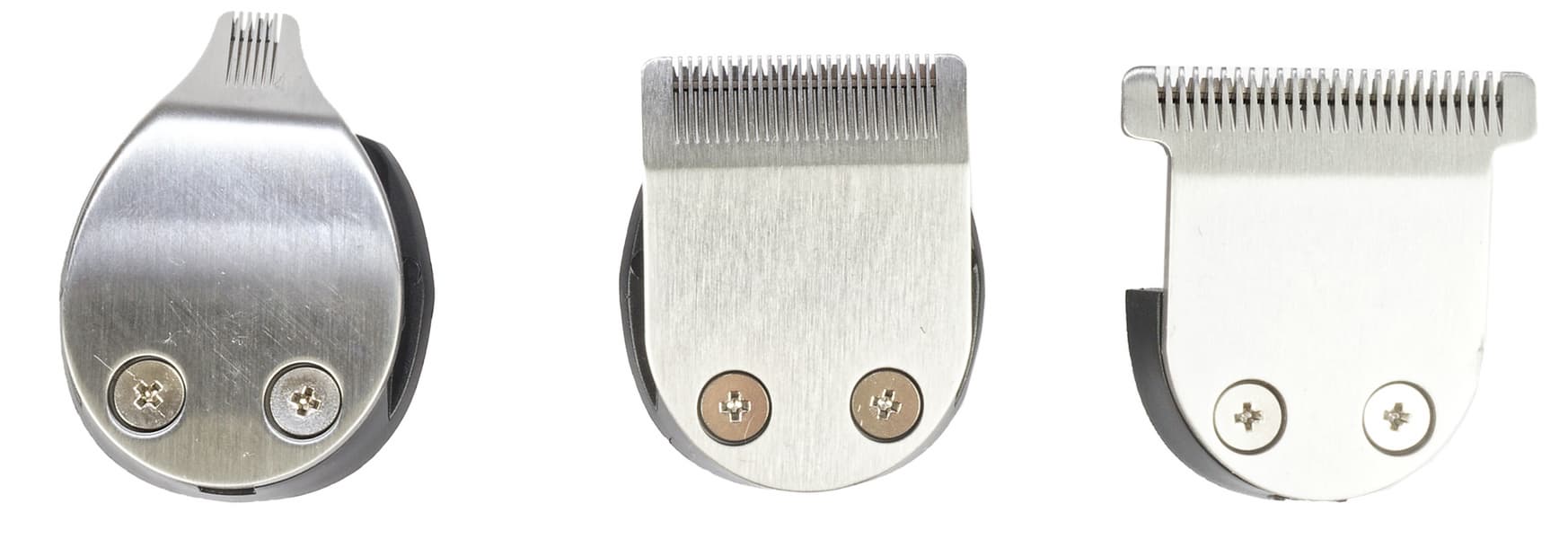 Теперь перейдем к сменным насадкам. Насадки-триммеры с ножами из нержавеющей стали очень похожи между собой. Сборка неплохая (используются металлические винты, так что насадку при необходимости можно самостоятельно разобрать), выглядят насадки тоже очень неплохо.