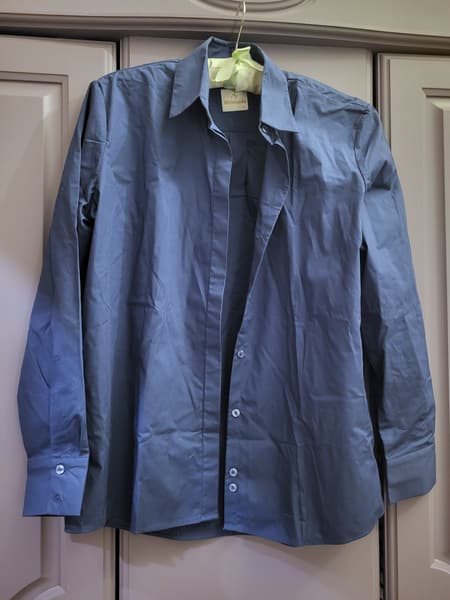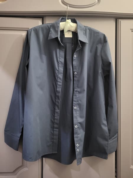 Смятая хлопковая ткань средней плотности хорошо реагирует на горячий пар: на максимальной мощности она разглаживается быстро, и изделие приобретает аккуратный вид (фото немного отличаются по цвету, но это одна и та же рубашка).