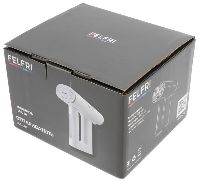 Felfri FGS-009 — компактный и мобильный отпариватель, который быстро разогревается и обеспечивает мощный равномерный поток пара. Он справляется с различными тканями и позволяет работать как в вертикальном, так и в горизонтальном положении, а функция сухой глажки делает его универсальным для домашнего использования.