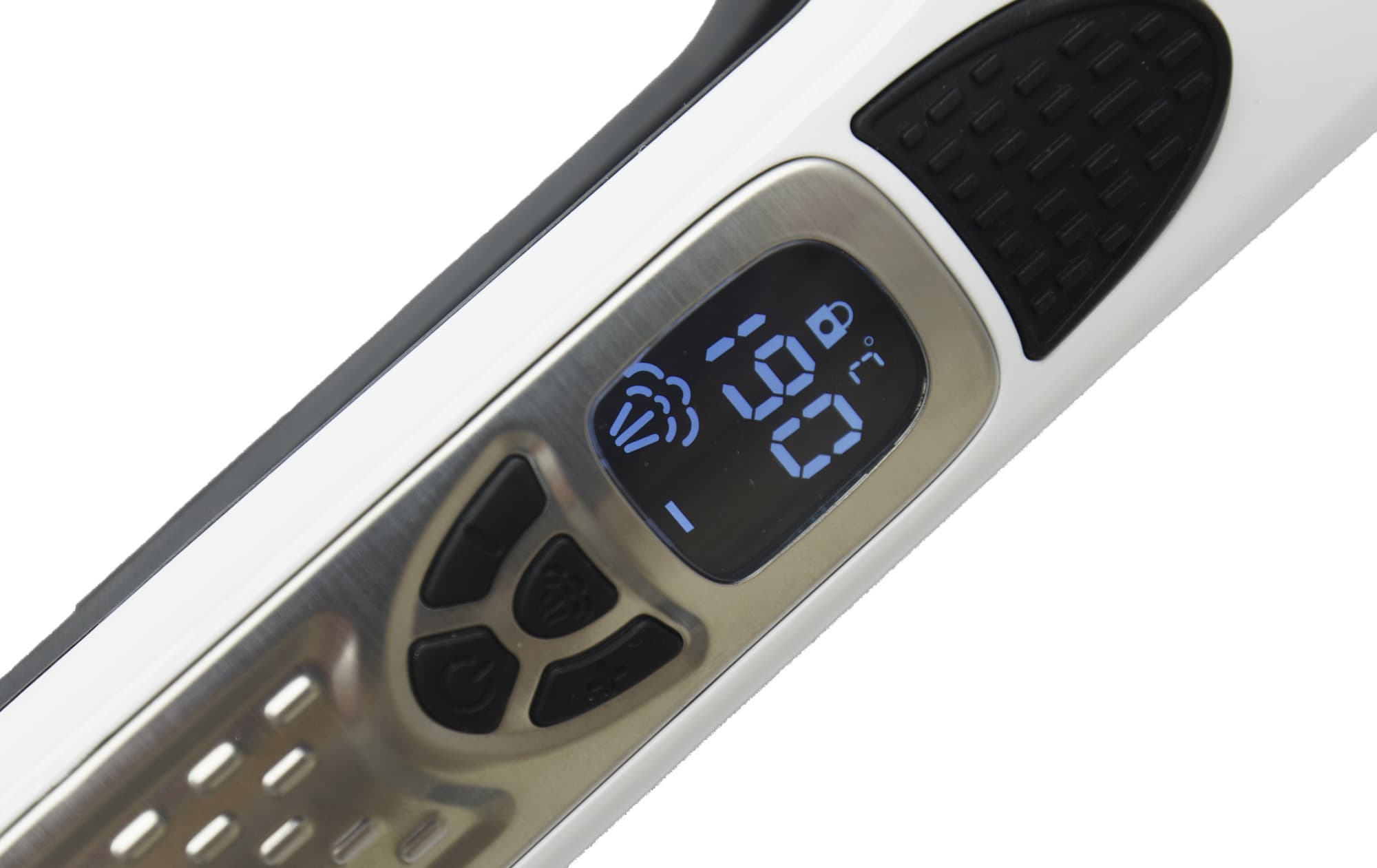 В процессе нагрева индикатор питания на экране будет мигать. При достижении рабочей температуры мигание прекратится и раздастся одиночный звуковой сигнал. Через 5 секунд появится значок блокировки температуры: случайные касания кнопок в процессе укладки не изменят уровень нагрева. Если требуется поменять температуру, разблокировать устройство можно нажатием и удержанием любой из четырех кнопок в течение 3 секунд. После чего снова задействовать «−» и «+».