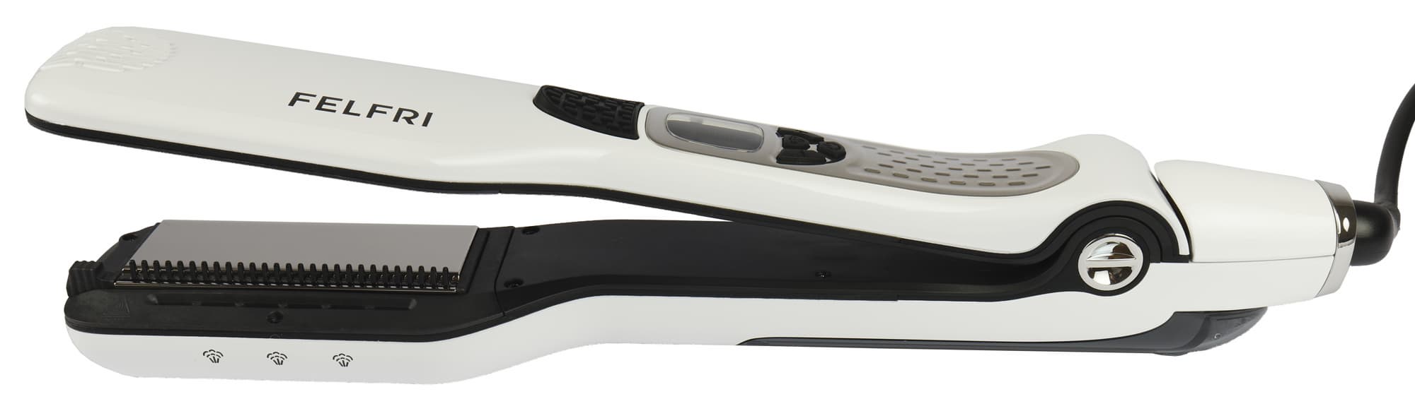 Стайлер Felfri способен обеспечить безупречный результат выпрямления на самых разных волосах. Оптимальный диапазон настроек температуры дает возможность качественно выпрямлять одновременно и тонкие мягкие волосы, и самые сложные жесткие. Горячий пар быстро и бережно воздействует на пряди, защищая их от пересушивания, а гладкие панели легко скользят по волосам, оставляя их после себя блестящими и идеально ровными.