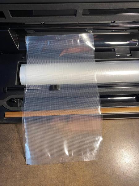 В комплекте поставки идет рулон с упаковочной пленкой. От него отрезаются нужной нам длины пленка, после чего с одной стороны их запаивают, таким образом формируется пакет для вакуумирования.
