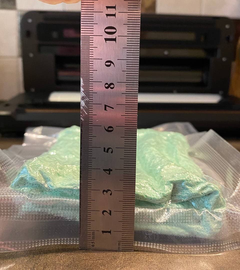 После работы вакууматора толщина сложенного полотенца составила всего 2,5 см.