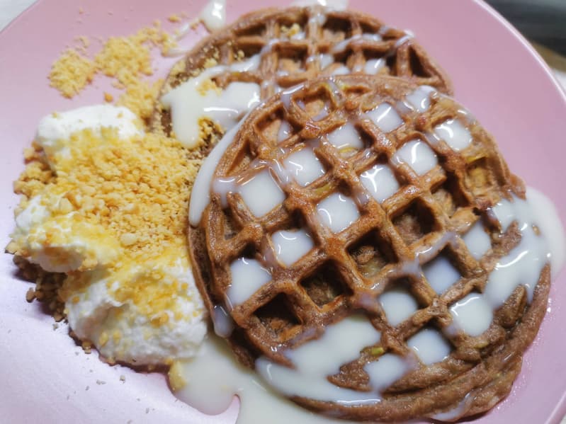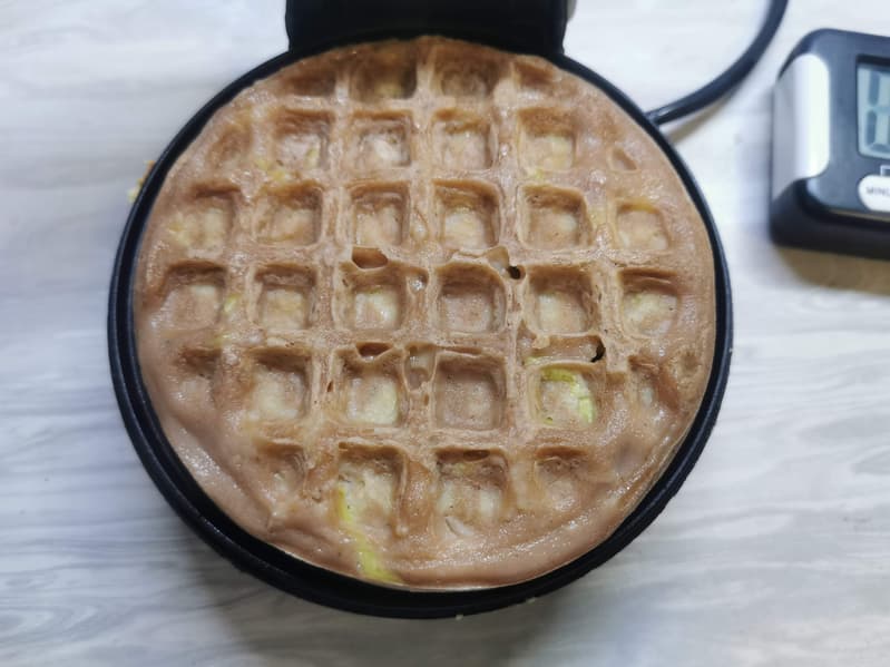 Еще за 7 минут мы испекли вторую вафлю. Тесто еще оставалось, но мы решили усовершенствовать рецепт и использовать его в следующем кулинарном эксперименте.