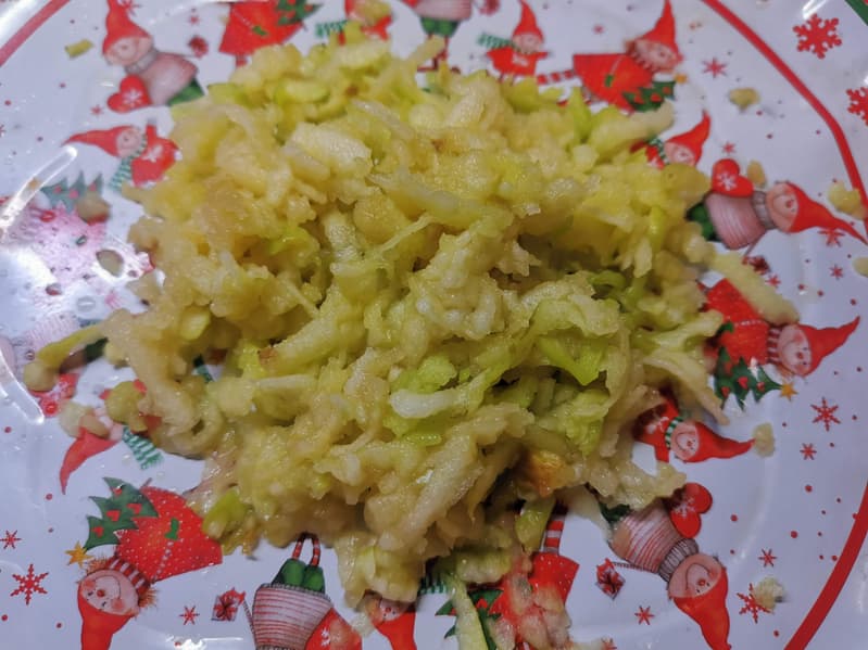 Так как вафельница у нас крохотная, мы взяли всего одно яблоко и натерли его на крупной терке.