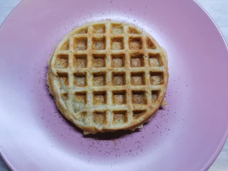 Первую вафлю не удалось сохранить к моменту приготовления второй, так как она была очень ароматная. Для подачи к столу мы посыпали вторую вафлю корицей.