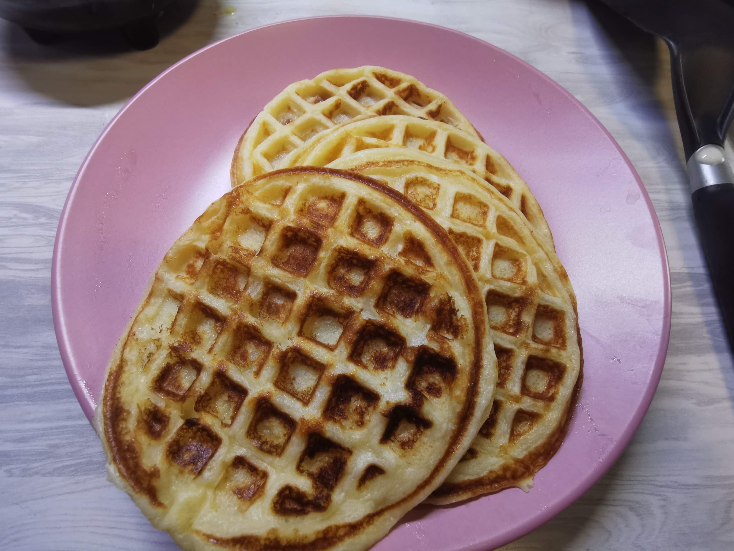 За 4 минуты наша первая вафля отлично пропеклась и подрумянились. После чего мы испекли еще несколько штук.