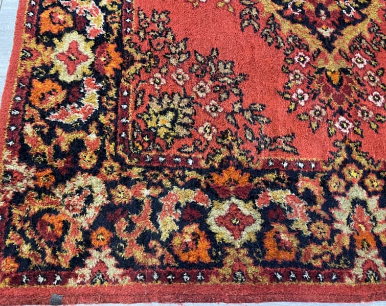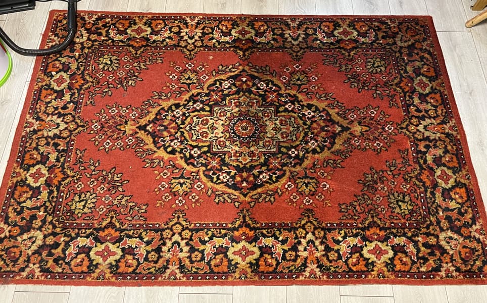 Мы специально приостановили работу на середине, чтобы нагляднее продемонстрировать разницу между исходным состоянием ковра и финальным результатом.