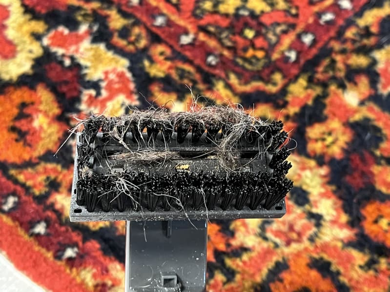 В этот раз мы выбрали насадку с большим количеством щетинок. Сравнительно небольшие щетки пылесоса, конечно, заметно увеличивают время работ, но зато каждому уголку уделяется пристальное внимание. Для наилучшей всасываемости щетину следует регулярно освобождать от налипшей грязи.