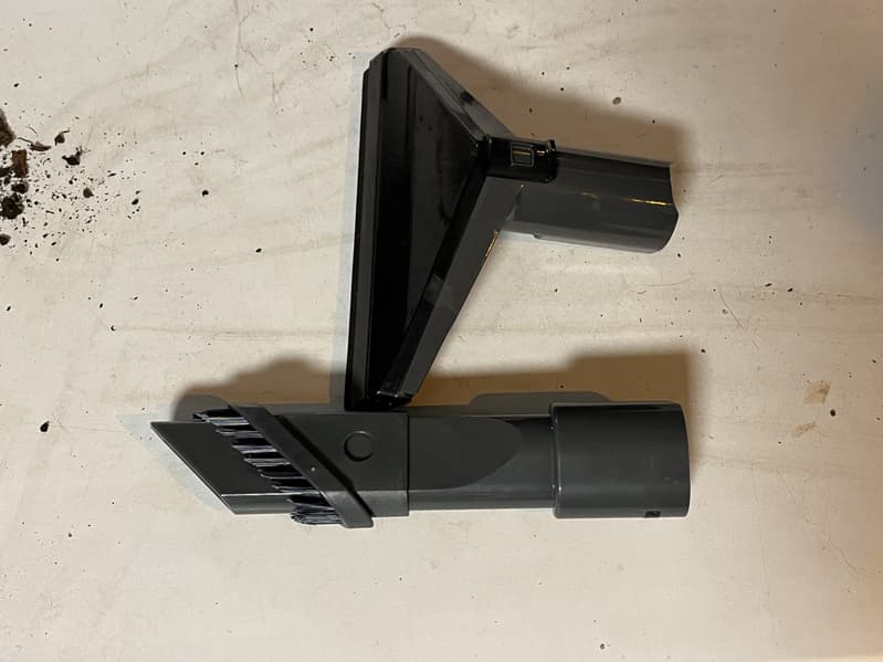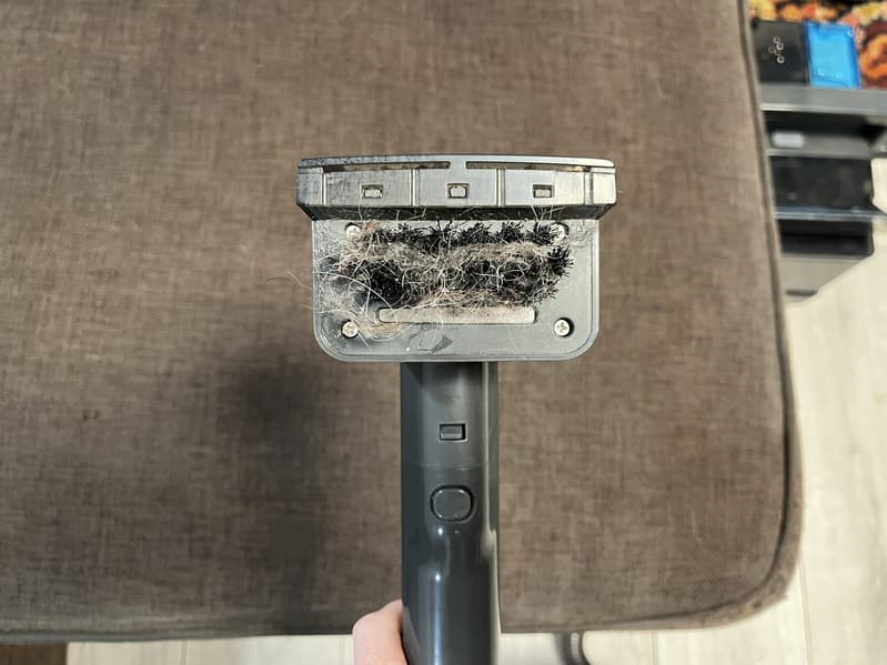 Основная насадка с ворсом имеет съемный пластиковый клапан для фильтрации крупного мусора при уборке. В теории его должно быть удобно мыть и очищать от частиц грязи, которые пылесосу не следует засасывать, дабы не засориться.